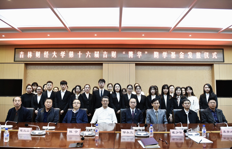 会上,崔少华、陈宁、楚立山分别发表了热情洋溢的讲话。崔少华表示,吉财“菁华”基金会设立的初衷就是为了帮助更多家庭经济困难的优秀学子,不断成长的同时也有许多不足,希望基金会能够不断壮大,从窄到宽,从少到多,能够扶助更多的学子。他还向同学们提出四点建议:一是希望大家勇于克服自卑心理,以自信的姿态去面对生活中的困难;二是希望大家能设立远大的人生目标,严格要求自己,不沉溺于现在,勇于追求未来;三是要勇于坚持,人生的路虽然很长,但是重要的只有几步,一定要持之以恒,坚持奋斗;四是要注重个人的品行修养,为未来的入职与工作做准备。陈宁希望各位获奖学生能够不断提升自己,为母校争光。他建议同学们要学习好专业知识,善于把握机会,迎接挑战,规划好自己的人生,提升自身的能力。楚立山在讲话中介绍了东北财经大学校友会工作的状况。他说,校友会为很多校友提供了实用的就业信息与资源,希望同学们能与校友会多接触、多互动,在与校友们的沟通和交流中成长。