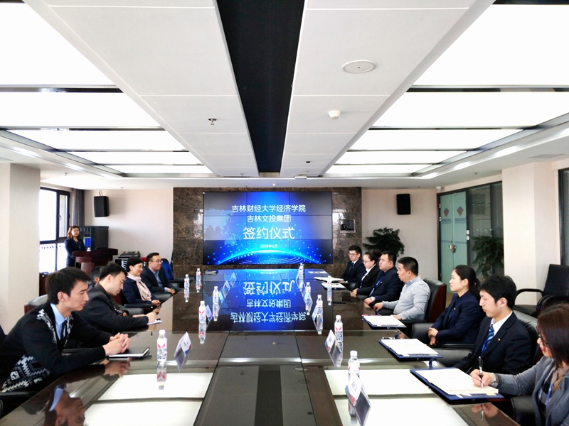 最后,经济学院院长高冠中与吉林省文化产业投资控股(集团)有限公司董事长兼首席执行官张子毅代表双方共同签订了合作协议书。