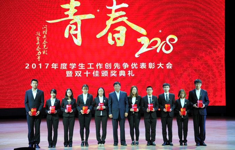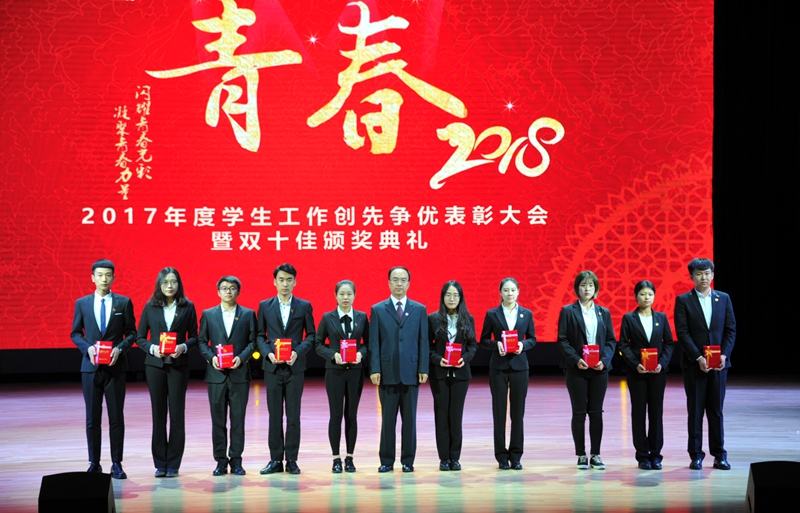 为了激发广大学生积极进取、开拓创新的热情,鼓励学生在德、智、体、美诸方面取得突出成绩,在学生中树立优秀大学生标兵,挖掘学生典型,培养优秀人才,学生工作部(处)武装部开展了2017年度“十佳大学生”评选工作。国际交流学院彭英鼎、会计学院方杰、亚泰工商管理学院王茹月、管理科学与信息工程学院庞欢、新闻与传播学院梁钰栋、应用数学学院张晗、统计学院赵彬竹、九台农商银行金融学院冷新宇、税务学院王晓佳、法学院王雪纯荣获2017年度“十佳大学生”荣誉称号。“十佳大学生”的辅导员老师为他们宣读了颁奖词,各学院党委(总支、直属党支部)书记为本学院“十佳大学生”颁发了奖牌和荣誉证书,获奖学生发表了获奖感言,表达了自己获得这一殊荣的欣喜和对母校的感激之情。