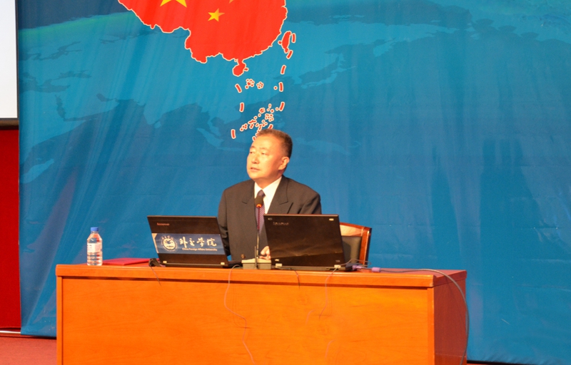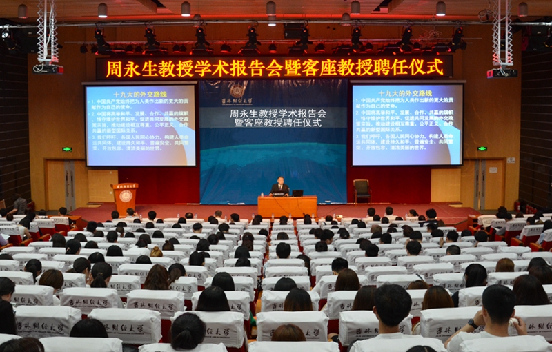聘任仪式上,校党委书记周知民为外交学院周永生教授颁发了客座教授聘书。随后,周永生教授围绕 “新时期中国外交方针”这一主题,阐述了习近平总书记在十九大报告中关于新中国外交路线的设定方案,并将其概括为“积极发展全球伙伴关系”、“坚定奉行独立自主的外交政策”、“秉持共建共商共享的全球治理观”等七个方面,并以“外交路线”为核心展开详细的解说。他强调,中国将继续发挥负责任的大国作用,积极参与全球治理体系的改革和建设,不断贡献中国的智慧和力量。