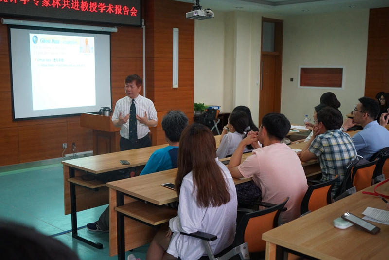 报告中,林教授向大家介绍了他的研究新领域,即Ghost Data,包括虚拟数据、缺失数据、做作数据、模拟数据等。林教授以大量生动形象的实例向大家阐释Ghost Data的价值、方法和应用等内容。林教授的报告充斥着辩证的统计思维,引发着在座师生的深思。譬如,林教授向大家介绍了缺失数据是统计分析中常被忽视的领域,但其中往往隐藏着更重要的信息等等。林教授认为,当代数据分析的理论基础是统计思维,而这种思维是无法用金钱购买的,只能通过大量思考和训练获得。林教授的报告使在场师生引发强烈的共鸣,并对Ghost Data产生浓厚兴趣。报告结束后,大家与林教授进行了深入互动。