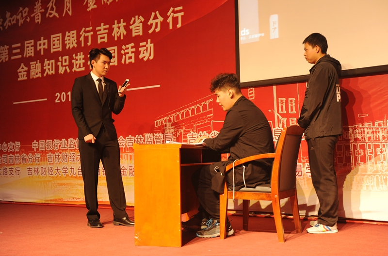 来自中国银行长春工农大路支行的杨丹宇引用大量的真实案例,分别就电信网络诈骗、非法集资、校园贷、现金贷等方面的金融知识进行了讲解。国际经济贸易学院和中行长春工农大路支行员工带来的普及金融风险防范知识的情景剧《校园贷》、《无边的贷价》借助大家喜闻乐见、通俗易懂的表演形式向同学们揭示了大学生身边存在的金融风险,提醒同学们务必理性消费、注意保护个人隐私,提高防范金融诈骗的安全意识。