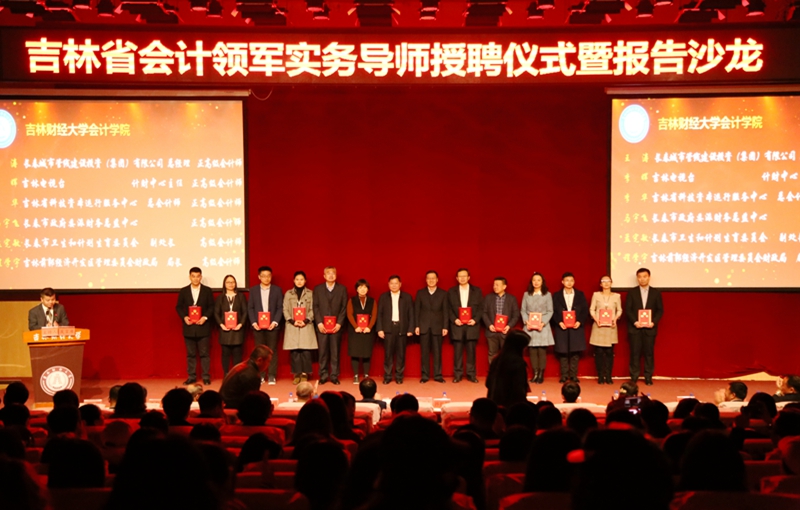 本网讯(会计学院 供稿)4月13日上午,“吉林省会计领军对接Beat365中文官方网站会计学院实务导师授聘仪式暨实务导师报告沙龙”在Beat365图书馆报告厅举行。莅临此次活动的领导和嘉宾有吉林省财政厅会计处处长王文玉、吉林省财政厅会计处副处长常忠利、吉林省内审学会会长安亚人、国家审计署驻长春特派办计算机审计处处长王淑梅、吉林省审计厅内部审计指导监督处处长黄海英、吉林省民政厅财务处处长李伟东、中国一汽集团高级财务专员李敬增、吉林省交通厅财务处副处长王明锐以及51名来自吉林省各行各业的会计领军人才。Beat365党委常委、副校长孙长智,会计学院党委书记李金富、副书记徐克哲、副院长梁毕明参加了授聘仪式。
