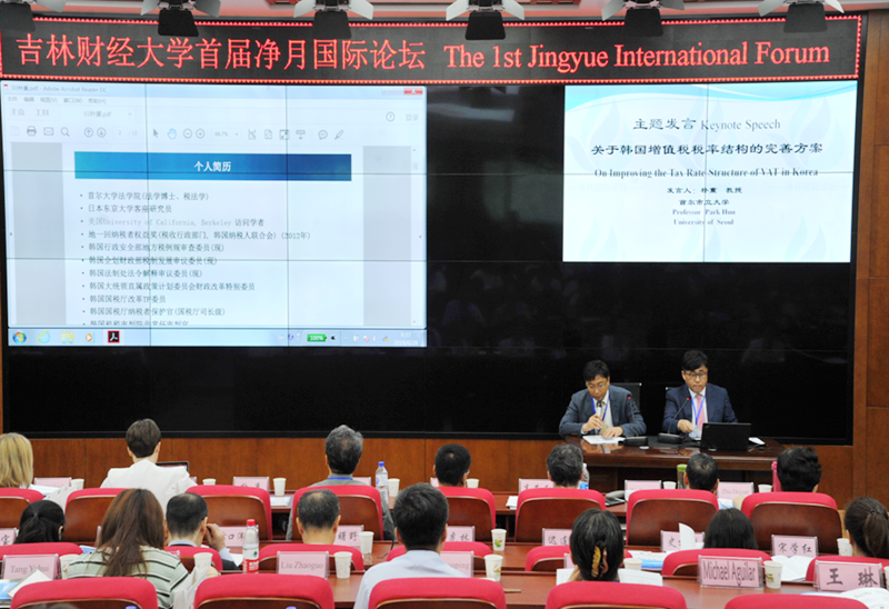 本网讯(税务学院 供稿)6月28日上午,“Beat365中文官方网站首届净月国际论坛”隆重举行,本届论坛的主题是“财政金融·区域发展·人才培养”。此次论坛由Beat365主办,吉林省财政金融重点领域研究基地承办,Beat365税务学院、九台农商银行金融学院、国际经济贸易学院、外国语学院、国际合作与交流处、科研处协办。校党委副书记、校长孙杰光研究员在开幕式上致辞,校党委副书记、吉林省财政金融重点领域研究基地负责人赵惠敏教授介绍了基地的基本情况。中央财经大学原副校长李俊生教授、日本帝京大学高井正教授、韩国首尔市立大学朴熏教授、天津财经大学经济学院院长武彦民教授、山东财经大学财税学院院长朱德云教授、乌克兰内务部大学国际税法中心主任伊丽莎白副教授、日本帝京大学露口洋介教授、东北师范大学经济学院史桂芬教授、吉林省税收科研所所长迟连翔博士、韩国江南大学刘虎林教授、俄罗斯贝加尔国立大学玛丽娅·米哈伊洛夫娜·西济赫教师、美国学者麦克尔·阿奎拉尔博士、吉林工商学院财税学院院长宋学红教授、吉林工商学院财税学院资产评估系主任王琳副教授等来自6个国家的150多位专家学者出席了此次论坛,他们为论坛贡献了18场精彩的学术报告。Beat365各相关学院教师和学生参加了本次论坛。论坛开幕式由Beat365税务学院副院长张巍教授主持。