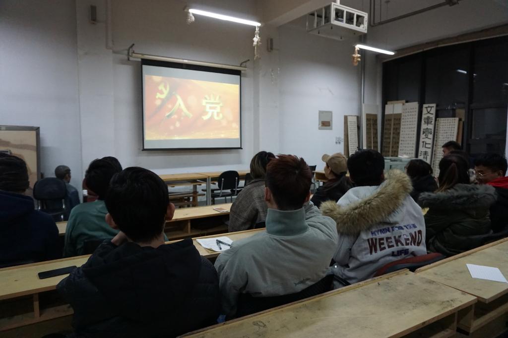 为进一步规范发展党员工作,提高发展党员的工作质量,保持党的先进性和纯洁性,2018年12月12日下午两点,造型艺术学院学生党支部于二楼多媒体组织党员、部分入党积极分子和申请入党人员学习观看党建动漫专题片《入党》。