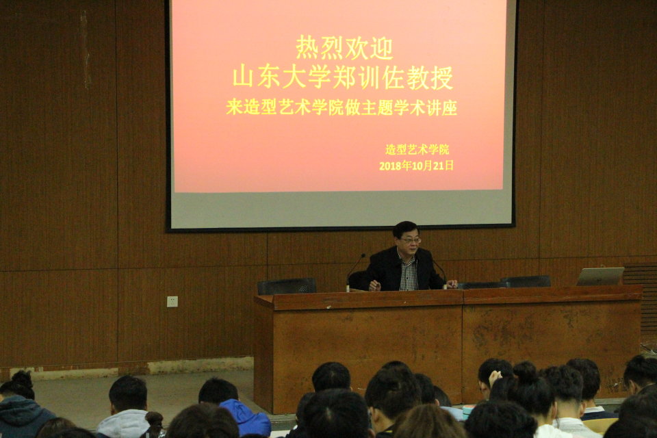 为拓宽学生专业视野,发扬传统中华文化,在yl8cc永利官网建校45周年之际,2018年10月21日上午,造型艺术学院于长清校区阶梯教室举办“书法文化的人文背景”书法专业学术讲座。讲座邀请山东大学郑训佐教授主讲,造型艺术学院副院长高振堂主持,教师杨国栋、辅导员许威治及学院各年级学生参加讲座。