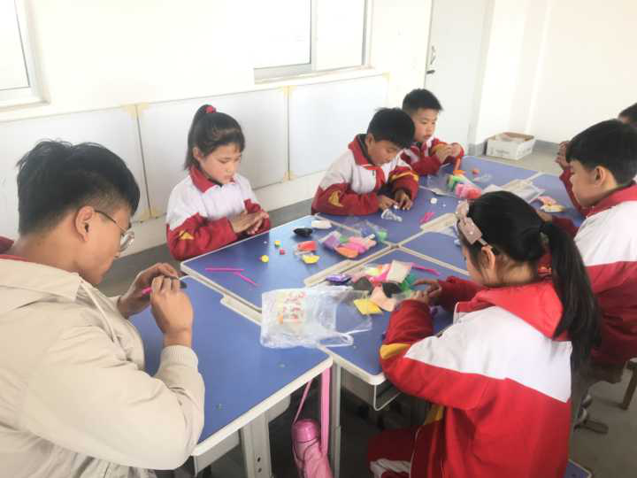 此次活动授课对象为一年级至六年级的学生。面对各年级不同阶段的学生群体,志愿者团队准备了不同的教学方案,第一节课堂上志愿者分别进行了彩塑及彩绘课程的教学,在之后的支教过程中他们将为学生们带去更多丰富有趣的艺术课程。在此次课上,支教老师通过简单的互动交流挑选出孩子们感兴趣的艺术形式,随后在课堂上展示示范创意画的过程及彩塑的基本造型并耐心的辅导孩子们画出他们自己喜欢的创意画。志愿者团队的交流指导让孩子们收获了快乐,丰富了想象力,开发了创新思维。对于支教老师来说,支教活动增强了大学生的社会责任感,锻炼了恒心与毅力。支教团队本着“授人以鱼不如授人以渔”的理念,为孩子们打开了一扇通往艺术的大门,带领孩子们了解和发现美,播下了希望的种子为孩子插上放飞梦想的翅膀。