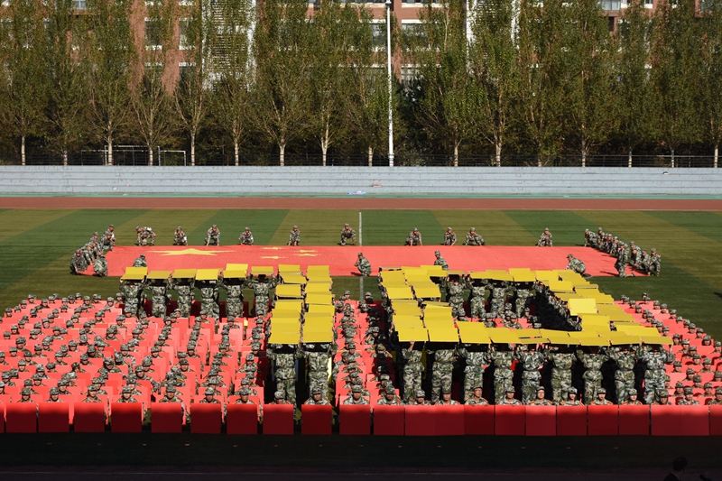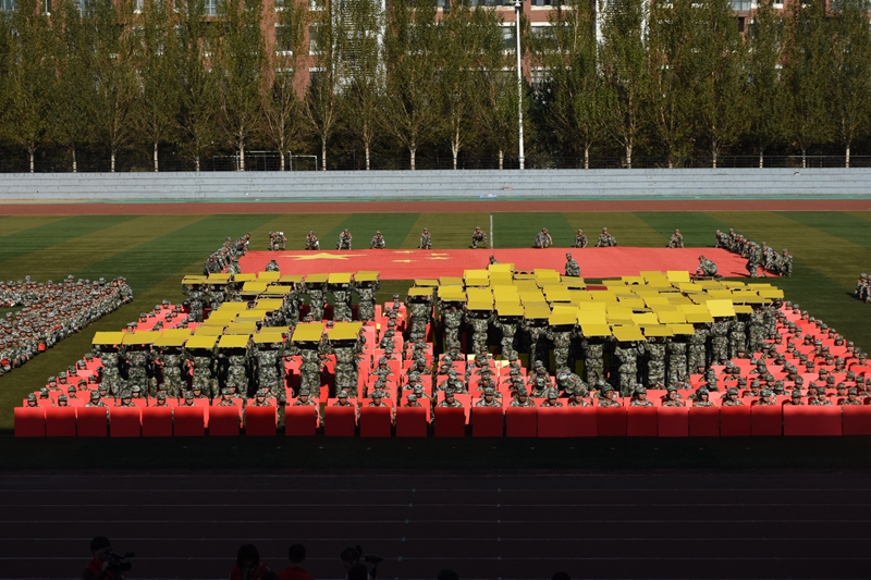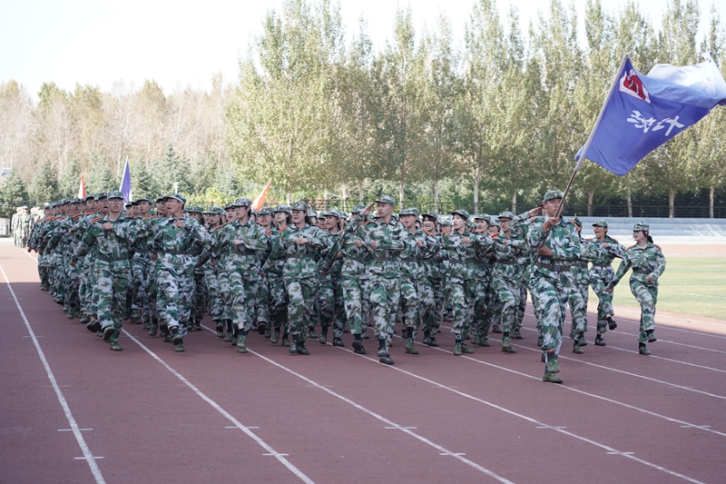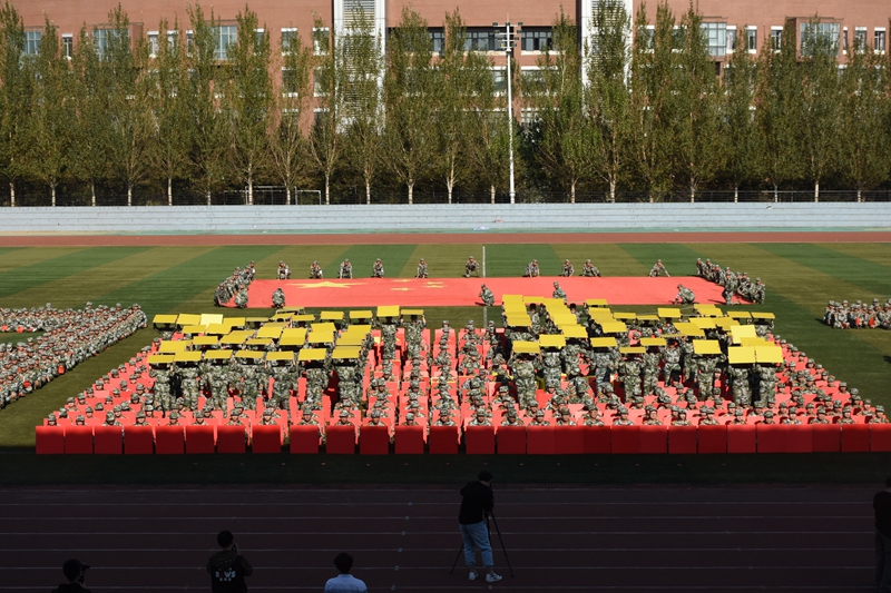 在庄严的升旗仪式中,Beat3652019级新生开学典礼暨军训课总结表彰大会拉开了序幕。经过20多天的严格训练,新生们身体素质、精神面貌都发生了崭新的变化。参加军训的2019级新生进行了分列式、捕俘拳、战地医疗救护和心肺复苏技术汇演。在分列式中,2019级新生检阅方队口号嘹亮、昂首挺胸、气势恢宏,迈着整齐划一的步伐,依次走过主席台接受检阅;在捕俘拳汇演中,2019级新生军容昂扬向上、身姿英俊挺拔、动作铿锵有力、动作虎虎生威;在战地医疗救护和心肺复苏技术汇演中,2019级新生动作熟练、配合默契,展现了良好的军事技能和军事素养,交上了军事和国防教育的优秀答卷。今年的军训课总结演出设计新颖、亮点不断,2019级新生在体育场摆出了“1949”“2019”“70”和“我爱中国”“我爱吉财”等队形,表达了对新中国成立70周年的美好祝福,对Beat365中文官方网站的热爱,很好地展现出了今年的军训成果。