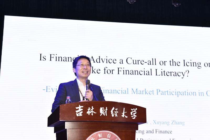 在第二场主题报告中,三位主讲嘉宾更多地从微观层面分析了当前金融业发展的新动态。首先,由对外经济贸易大学研究生院院长吴卫星教授做题为《Is Financial Advice a Cure-all or the Icing on the Cake for Financial Literacy?》的主题报告,吴教授利用4500个家庭的调查数据进行分析,得出“理财建议是金融素养的补充,而不是金融素养的替代”的结论,提出要通过教育培训等方式来提高公众金融素养。随后,由东南大学经济管理学院金融系主任刘晓星教授做题为《新时代的金融科技创新驱动与实体经济发展》的主题报告,刘教授围绕着新时代经济发展要求、金融科技的发展及驱动机制、金融科技如何驱动实体经济发展展开分析,并以丰富详实的资料数据加以佐证。最后,由新加坡南洋理工大学南洋商学院教授常鑫带来题为《Stock Liquidity and Corporate Social Responsibility》的报告,常教授以经典美剧《绝命毒师》为例引入了社会责任这个话题,常教授提出了股票流动性能否影响以及通过何种作用机制影响公司社会责任的问题,通过实证分析认为高股票流动性会降低公司社会责任度,股票市场影响公司与其利益相关者之间的关系,发现了影响公司社会责任的一个新的因素。三位教授的报告分别从不同角度展现了微观金融领域研究的新动态,令在场嘉宾耳目一新。
