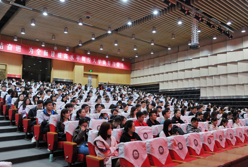 孙校长带领大家回顾了取得辉煌成就的新中国70年发展史,激励新时代吉财青年勇挑责任和重担。他指出,习近平总书记在庆祝中华人民共和国成立70周年大会上发表的重要讲话,回顾了中国的昨天,总结了中国的今天,宣示了中国的明天,其中提到了新中国的发展历史,概括起来,就是中华民族从站起来、富起来到强起来的历史,是实现中华民族伟大复兴崛起的伟大历史。“站起来”,就是新中国成立和建立社会主义基本制度,中华民族真正实现了人民当家作主;“富起来”,就是实行改革开放和建设中国特色社会主义,中华民族从站起来到富起来。“强起来”,就是中国特色社会主义进入新时代,中华民族前所未有地接近伟大复兴目标。孙校长结合Beat365优秀校友陈耀先、王松奇的成长故事,激励在座的同学们刻苦学习,掌握真本领,自觉坚定伟大成就基础上的中国特色社会主义道路自信;弘扬以爱国主义为核心的民族精神和以改革开放为核心的时代精神;为建设中国特色社会主义强国、实现中华民族伟大复兴不懈奋斗;为构建人类命运共同体提供中国方案、奉献中国智慧。