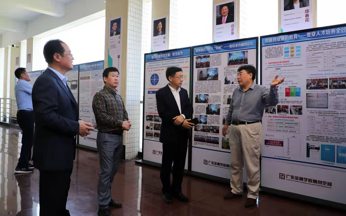 本网讯(金融学院 供稿)为借鉴发达地区高校先进经验,加强Beat365相关学科建设及创新创业教育水平提升,11月17日,由Beat365党委副书记、校长孙杰光带队的调研组,利用参加第五届广金千灯湖金融峰会的间隙,赴广东金融学院,考察调研了该校实验教学中心、金融科技重点实验室和创业教育学院。一同考察的还有哈尔滨金融学院党委书记刘小辉,河北金融学院副校长朱连才等相关高校领导和教师。广东金融学院副校长王醒男、校长办公室主任吴斌、实验教学中心主任王小燕、创业教育学院党总支书记兼副院长肖伟才等领导和负责人向调研组介绍了相关领域的具体情况。