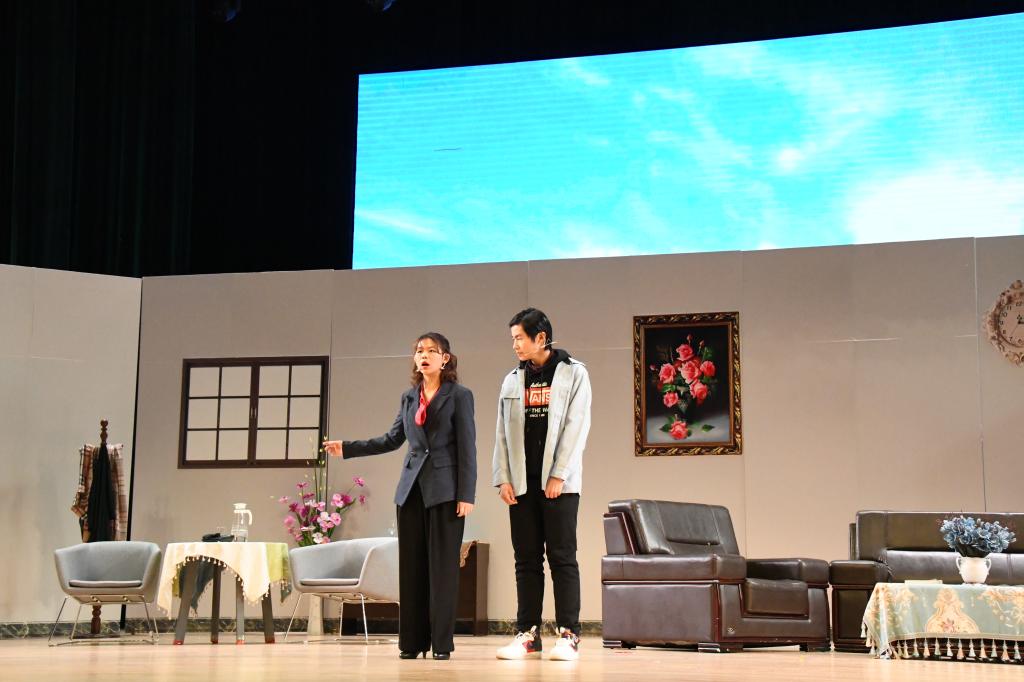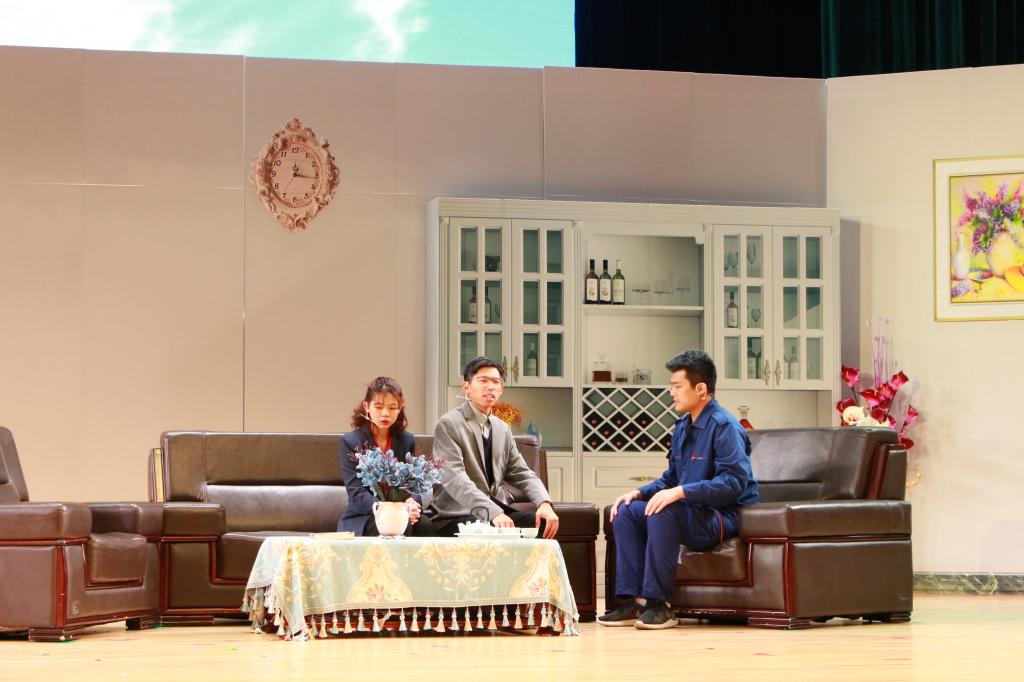 在主题教育期间正值学校纪委举办“Beat365中文官方网站第六届廉政文化建设活动月”,活动期间除了在广大师生中开展廉政文化书画作品征集、微视频创作等多种艺术形式宣传崇尚廉洁的价值理念外,为了丰富廉洁教育形式,学校荆风话剧社按照校党委、校纪委推动全面从严治党向基层延伸,加强党风廉政建设和反腐败工作的总要求,经三个多月的精心准备,三十余次排练,精心排演了反腐倡廉话剧《清与浊》,话剧《清与浊》是由中共广东省直属机关工作委员会、中共广东省直属机关纪律检查工作委员会主办及承办,并由广州踏歌起舞文化传播有限公司制作的话剧《黑瞳》改编而来的。话剧围绕改革开放以来,国有企业不断壮大,为推动经济社会发展做出了巨大贡献,主人翁吴曼华和林儒是夫妻。吴曼华作为国有企业明华集团的董事长,在经济发展的浪潮中丢掉了初心,忘记了根本,将党员这第一身份抛之脑后。林儒,作为大学教授,建筑工程设计师,正直廉洁。国家投资建设几所希望小学,一些蛀虫又想从中牟利。作为村霸的保护伞,吴曼华把国企当成“私家花园”,伴随着各层利益关系交织渐密,她也一步步陷入了无尽的深渊。剧中林儒作为吴曼华的丈夫,多次苦口婆心以“不忘初心”、“为人根本”、“道德约束”等道理来劝诫妻子吴曼华,但是法网恢恢,疏而不漏,藐视党纪国法,触犯刑律的人终将被送上人民审判台,吴曼华最终难逃法网。话剧彰显了党和国家加强党风廉政建设、严惩腐败、扫除黑恶势力的坚强决心。