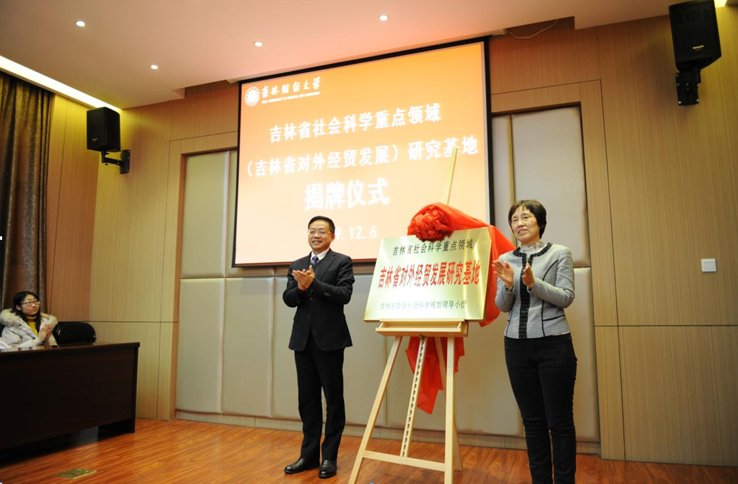 随后,毕秀梅主任和孙杰光校长共同为吉林省社会科学重点领域(吉林省对外经贸发展)研究基地揭牌。
