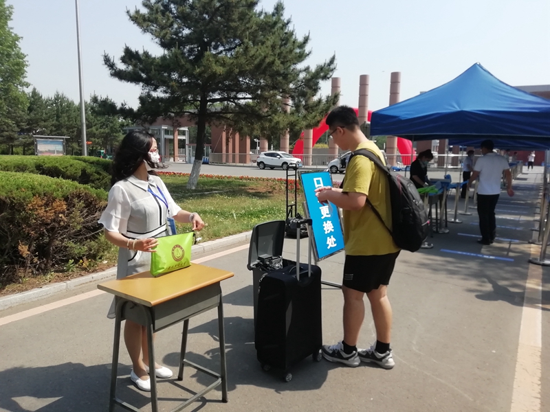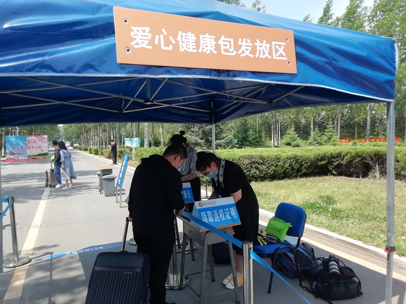 在疫情防控的特殊时期,学校更加注重对学生的人性化关怀,每一名返校的学生都收到了学校发放的“爱心健康包”,里面口罩、体温计、消毒湿巾、洗手液等备品一应俱全,学工系统工作人员、辅导员进行值班值守,做到学生返校全程指导与服务。