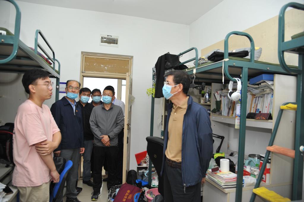 学校领导马尚、孙杰光、邹永亮、于金欢在东门检查了学生返校工作安排,代表学校欢迎各位同学回家,并对工作人员和志愿者进行慰问。各学院书记、院长也在东门,迎接自己学院的学生重返校园。中午和下午,学校领导马尚、孙杰光、邹永亮、于金欢前往学生宿舍、食堂,亲切看望了第二批返校的学生,详细了解毕业生健康查验、离校手续办理、食宿安排、假期学习、毕业就业等情况,并叮嘱同学们做好科学防护,保护自己和家人的身体健康和生命安全。同时,学校领导嘱咐相关部门负责人结合学生返校,做好疫情防控和安全保障工作。