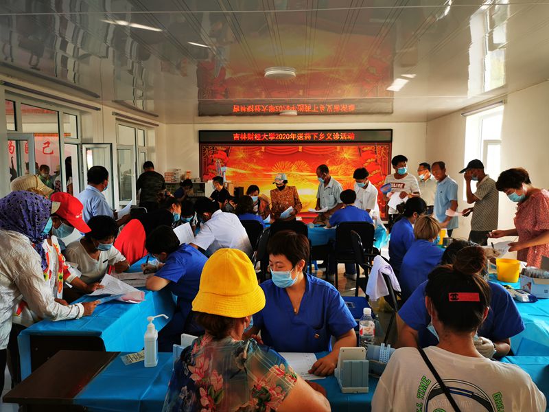 15日上午,经过近6个小时车程,马尚书记一行抵达通榆县,随即赶往八面村,于下午2:30准时开展了义诊活动。通榆地区干旱少雨,义诊活动当天最高气温34℃。为确保群众安全,学校帮扶干部和驻村工作队组织年老体弱群众优先入场,并布置了休息区域。义诊现场,医护人员挥汗如雨,有序为群众做血压、血糖和心电检测,坐诊医生结合体检情况及既往病史为群众现场诊治,并免费发放药品。在疫情防控与脱贫攻坚工作重要时段,学校医护人员逆流而上,勇挑重担,用实际行动诠释了医护人员的奉献精神和本色。