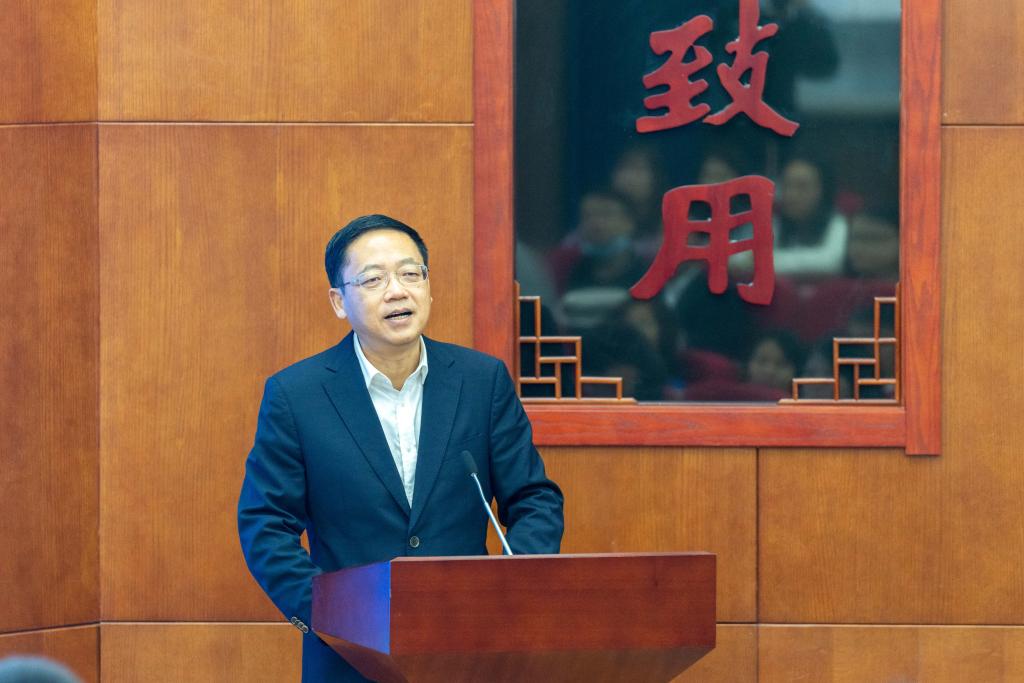 签约仪式上,校党委副书记、校长孙杰光作了讲话。他首先向多年来关心、支持Beat365学科建设和人才培养的吉林证监局、大连商品交易所表示了衷心的感谢。接着向与会嘉宾介绍了Beat365中文官方网站七十余年的发展历程和金融学院在师资队伍建设、人才培养、服务社会等方面的创新发展,着重介绍了金融学院在农村合作金融、农业保险、普惠金融等研究方向上取得的研究成果。孙校长指出,在Beat365师生深入学习贯彻习近平总书记视察吉林重要讲话重要指示精神的关键时期,吉林证监局、大连商品交易所与Beat365开展战略合作,是深化政产学研合作、推动资本市场服务吉林实体经济高质量发展的积极实践,也是Beat365主动面向区域、面向行业、面向产业办学,促进人才培养供给侧和产业发展需求侧结构要素全方位深度融合的大胆尝试。他对Beat365与吉林证监局、大连商品交易所签署战略合作协议、深化各领域合作这一创新模式致以了美好的祝愿,同时也向参加期货人才培育项目的学生寄予深切希望。
