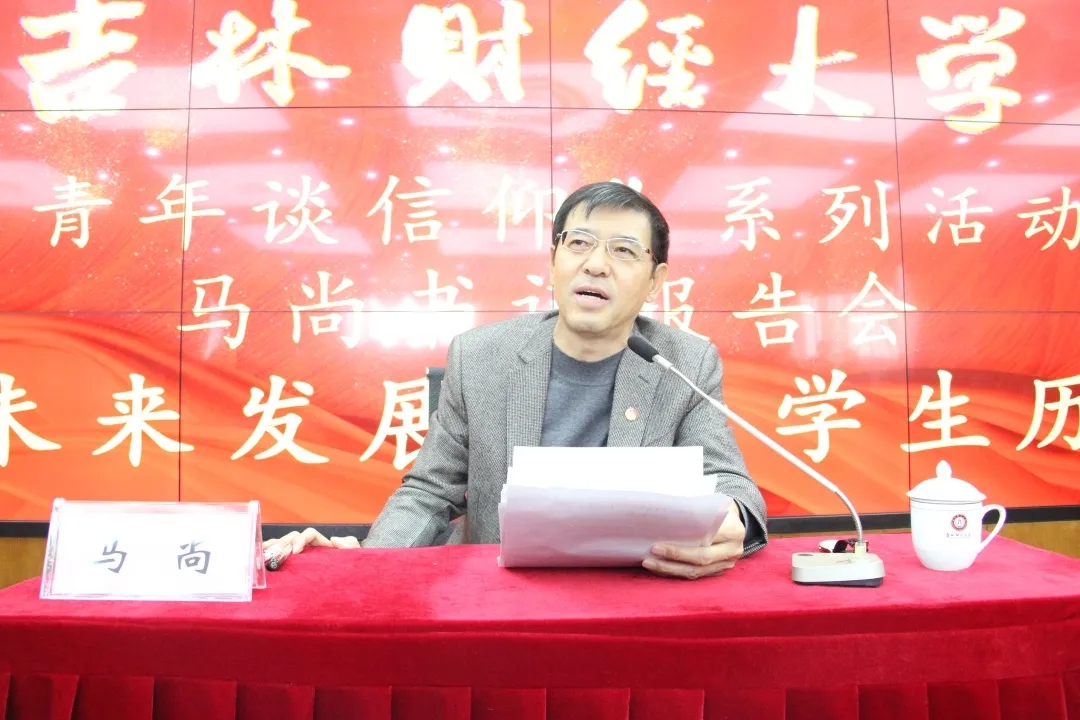 校党委书记马尚从当代中国最显著的特征、中国的未来发展、新时代中国大学生的历史使命三个方面为大家上了一堂高屋建瓴接地气、通俗易懂显真情的思政课。他深刻剖析了新时代的标志、新时代的目标、新时代社会的主要矛盾,讲述了中国特色社会主义进入新时代在中华人民共和国发展史上、中华民族发展史上、世界社会主义发展史上和人类社会发展史上的重大意义,并结合我国改革开放以来的伟大成就,综合分析了国际国内形势和我国的发展条件,指出中国未来的发展从二〇二〇年到本世纪中叶可以分两个阶段:第一个阶段是从二〇二〇年到二〇三五年,在全面建成小康社会的基础上,再奋斗十五年,基本实现社会主义现代化;第二个阶段是从二〇三五年到本世纪中叶,在基本实现现代化的基础上,再奋斗十五年,把我国建成富强民主文明和谐美丽的社会主义现代化强国。从全面建成小康社会到基本实现社会主义现代化,再到全面建成社会主义现代化强国,是新时代中国特色社会主义发展的战略安排。他向在场青年学生提出三点要求:一是应该保持政治清醒,坚持社会主义道路;二是努力学习奋斗,积累报效祖国本领;三是投身社会实践,建设文明富强国家。最后,马尚书记结合学校疫情防控常态化的工作任务,强调所有人要筑牢防线不放松,要保持健康文明的生活方式和卫生习惯,多理解、多支持学校事业发展,学校也会尽最大努力为同学们创造良好的学习条件和生活条件。