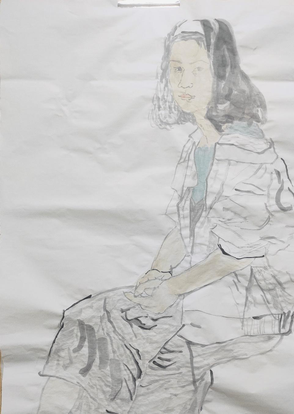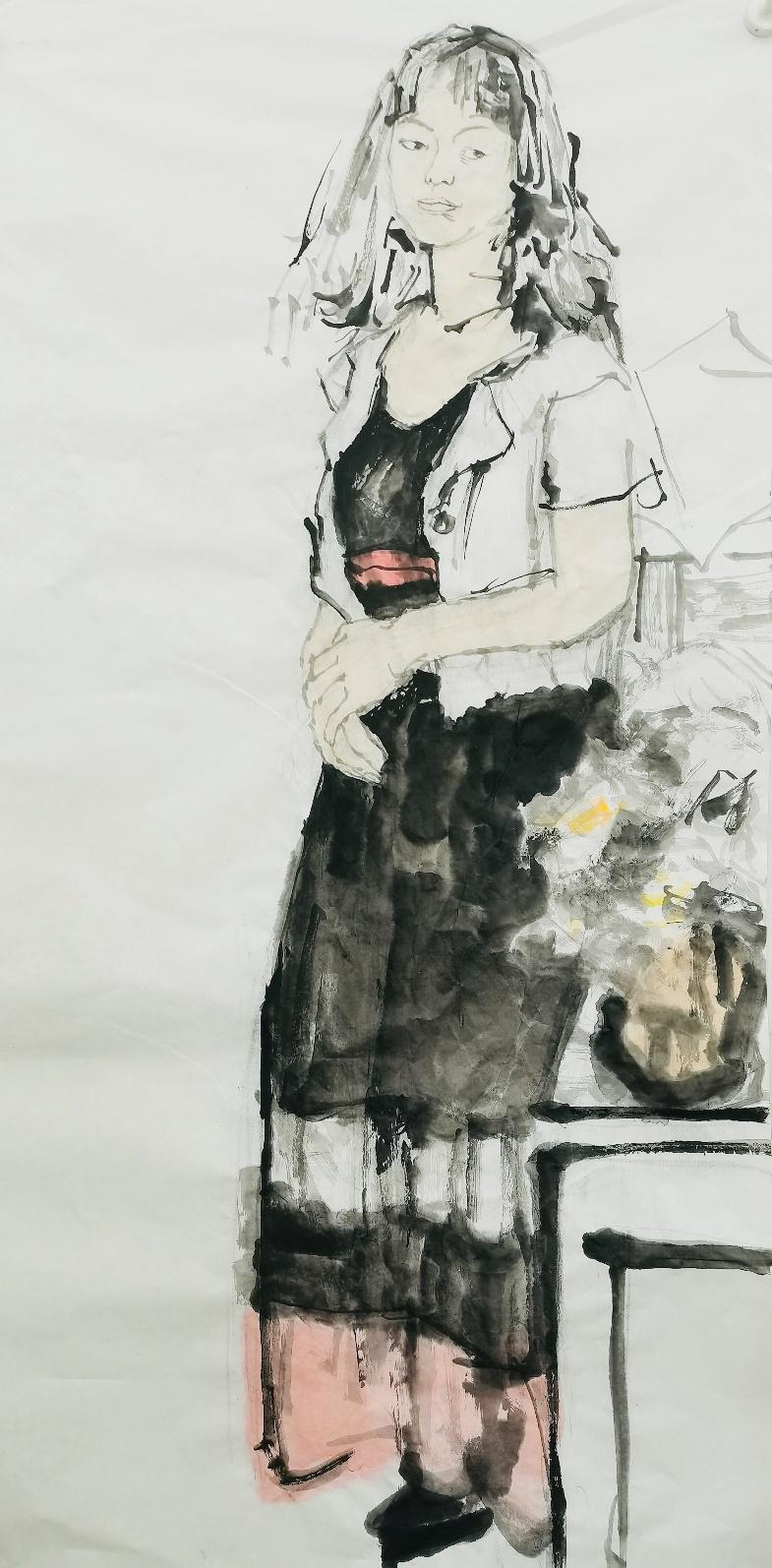通过这几周的学习,之前我对人物并不是特别的敏感,然后在人物的一些方面可能会多多少少存在一些自己的问题。但是通过这几周的学习,首先我感觉对人物的外形上,通过一些大量的练习,就是手上功夫会熟练一些,对于结构骨点等处会有意识去留意处理,然后自己开始对人物会有一点自己的想法。然后在练习中,不论是一些线条还是墨色上,等等都会去注意。在提笔顿笔上会有灵活的走动,保持书写感,对于墨色的一些微妙变化也有了想法。我们对水墨的了解还是比较浅淡的,然后通过这几周顾老师的交流与输出,希望在之后会有更多的练习去不断的完善自己的水墨人物,去不断地抓住人物的造型与特征,感谢老师这段时间的指导。(20级国画人物本科班\李雯雯)