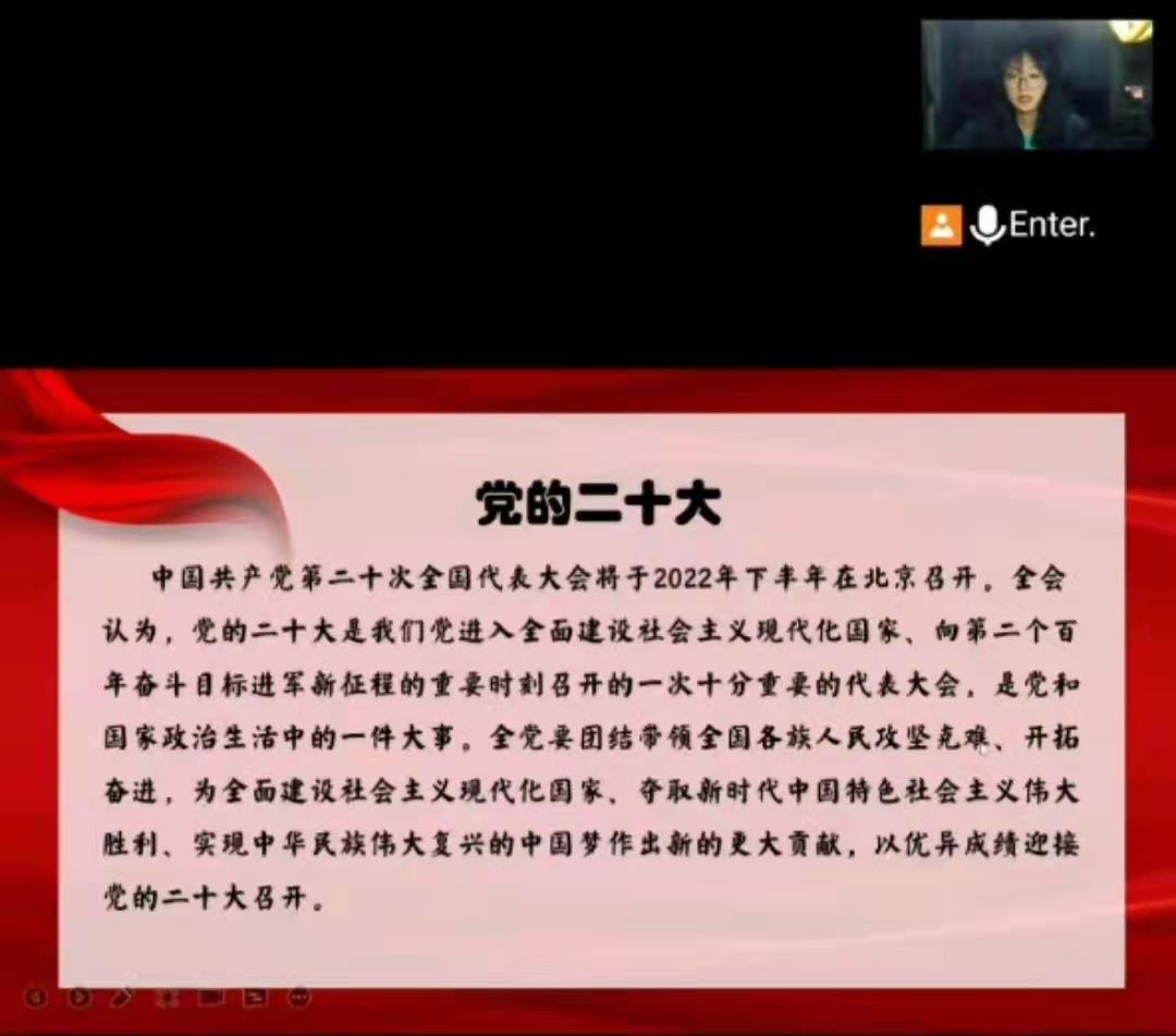 本次云团课以团支部为单位开展。各团支部书记及其他团干部带头宣讲党的理论知识,宣传党的十八大以来党和国家事业取得的历史性成就、发生的历史性变革,强调坚持党的领导、坚持走中国特色社会主义道路、坚持唱响时代主旋律的必要性与重要性。同时,团干部们结合学校实际情况,组织青年团员就校园疫情防控、安全稳定、心理健康等重点问题进行了重要文件、重要精神学习与解读,帮助同学们解决难题、调整心态、增进信心,号召大家牢记党的宗旨、继承党的优良传统,严守疫情防控要求,筑牢校园安全防线,献礼党的二十大。团课结束后,团员们纷纷在班级群发表学习感悟。