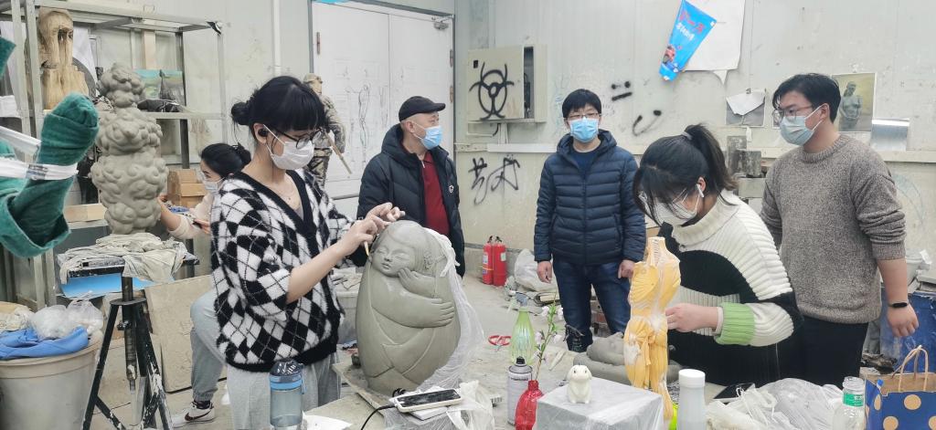 刘宁院长重点关注同学们实体创作课程转为线上教学的感受体验,对各班专业课的学习情况进行检查,了解各专业线上学习遇到的困难、同学们关于疫情防控期间线上学习的特殊诉求。刘宁院长对同学们提出的改进网上授课的方法予以肯定,表示可以推广使用;对师生齐手提升雕塑大棚教学环境等各项“为同学做件事”的暖心活动提出表扬,鼓励老师同学们积极发扬雷锋精神,加强自身道德建设,攻坚克难、携手打造适宜学习生活的特色环境。