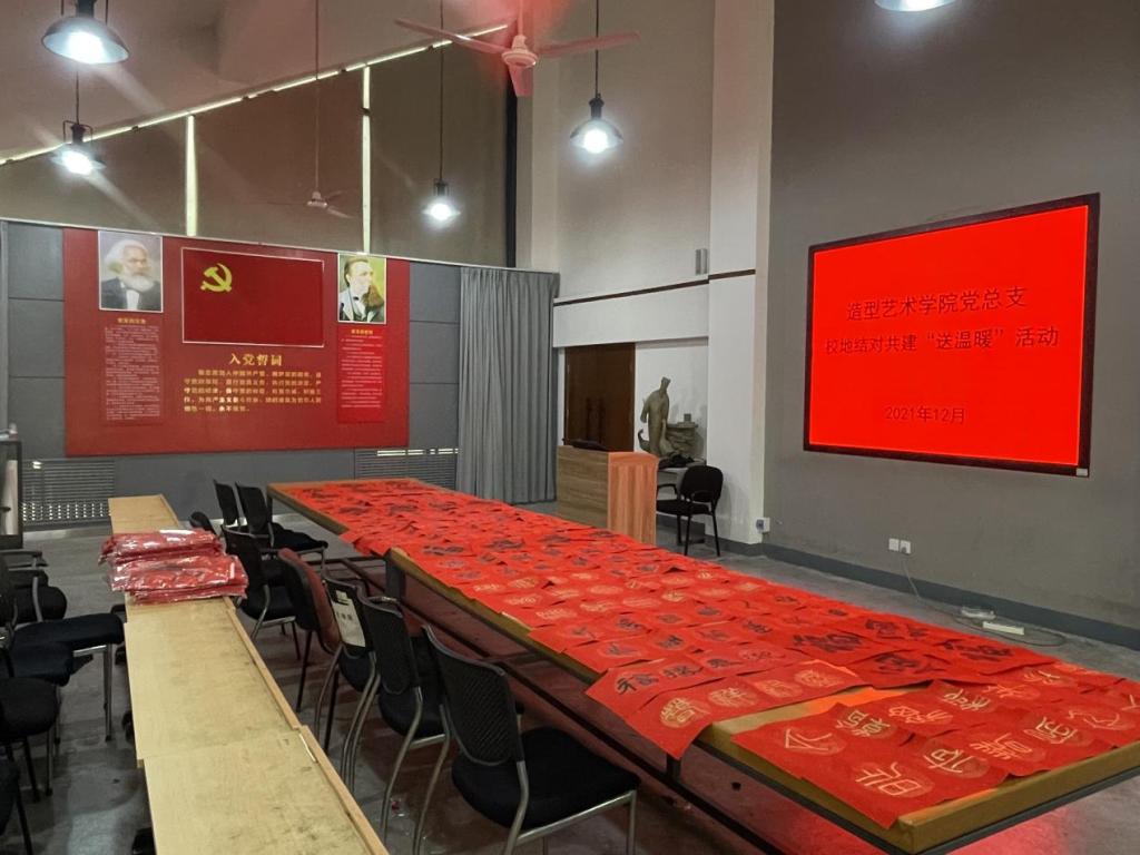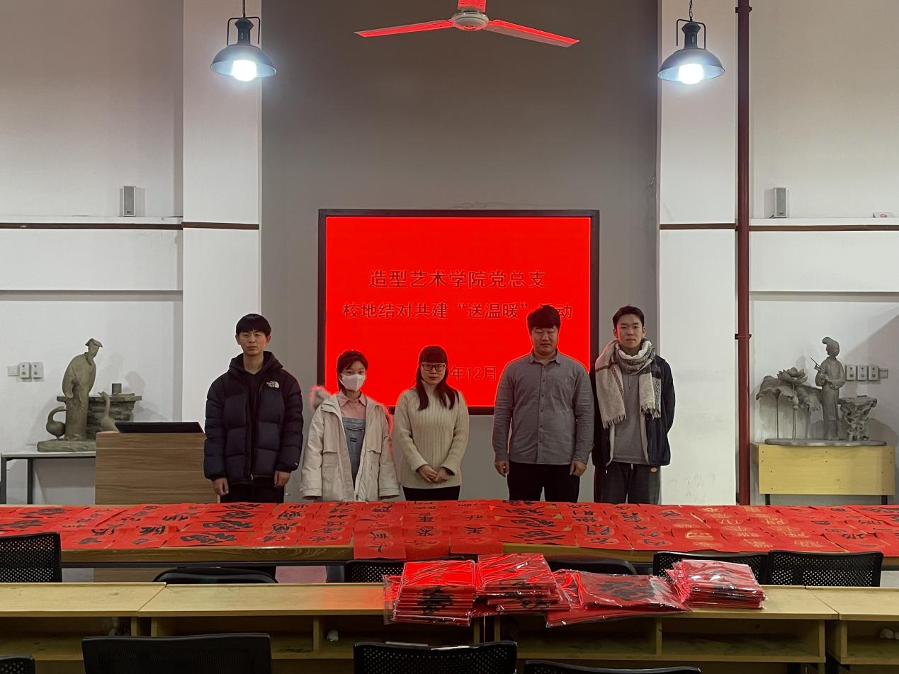 为进一步落实党史学习教育“我为群众办实事”活动,推进校地结对共建和社区区域化党建工作部署,造型艺术学院党总支与润和山居社区居委会党支部深化结对共建。春节临近,12月22日,党总支书记牛序茜带领书法专业师生和学院管理人员来到共建单位润和山居社区,润和山居党支部书记段静芝及社区居委会副主任刘鹏热情迎接。