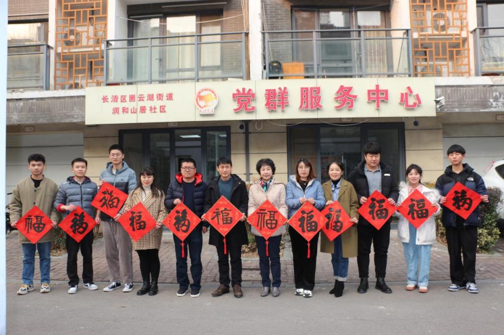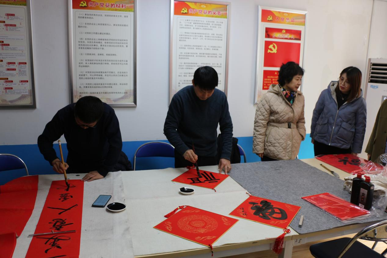 走访活动最后,造型艺术学院党总支向润和山居送上了书法专业师生书写的新年春联和福字,学院书法专业邵仲武教授和聂国强老师现场挥毫,书写福字和春联,送上对社区居民的节日祝福。本次党建活动,传播了社会主义文化建设,弘扬了中华传统文化,展现了党总支“我为群众办实事”的专业特色,也是书法专业师生的一次实践教学。