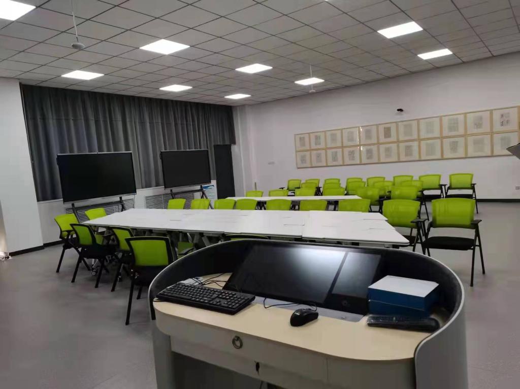 针对师生提出的学院二楼多媒体教室改善问题,学院利用暑假对多媒体2031教室进行全面基础装修提升,配备电子大屏幕、可移动组合的会议桌椅,多媒体讲台、音箱及课程视频录播设备等。教室多媒体教学平台、专业化设备的提升,使教室成为融教学、实践为一体的专门化教室,既体现满足学院的人才培养要求,又更好地体现教学资源的便捷化和灵活性。