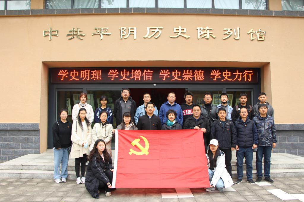 2021年10月20日,造型艺术学院党总支组织教工党员和学生党员赴济南市平阴县进行党员培训暨党史学习教育,引导师生党员重温光荣历史、传承红色文化、陶冶道德情操、培养爱国爱党情感。