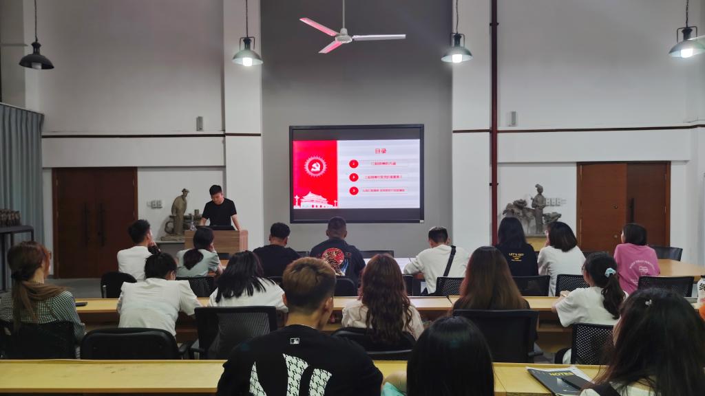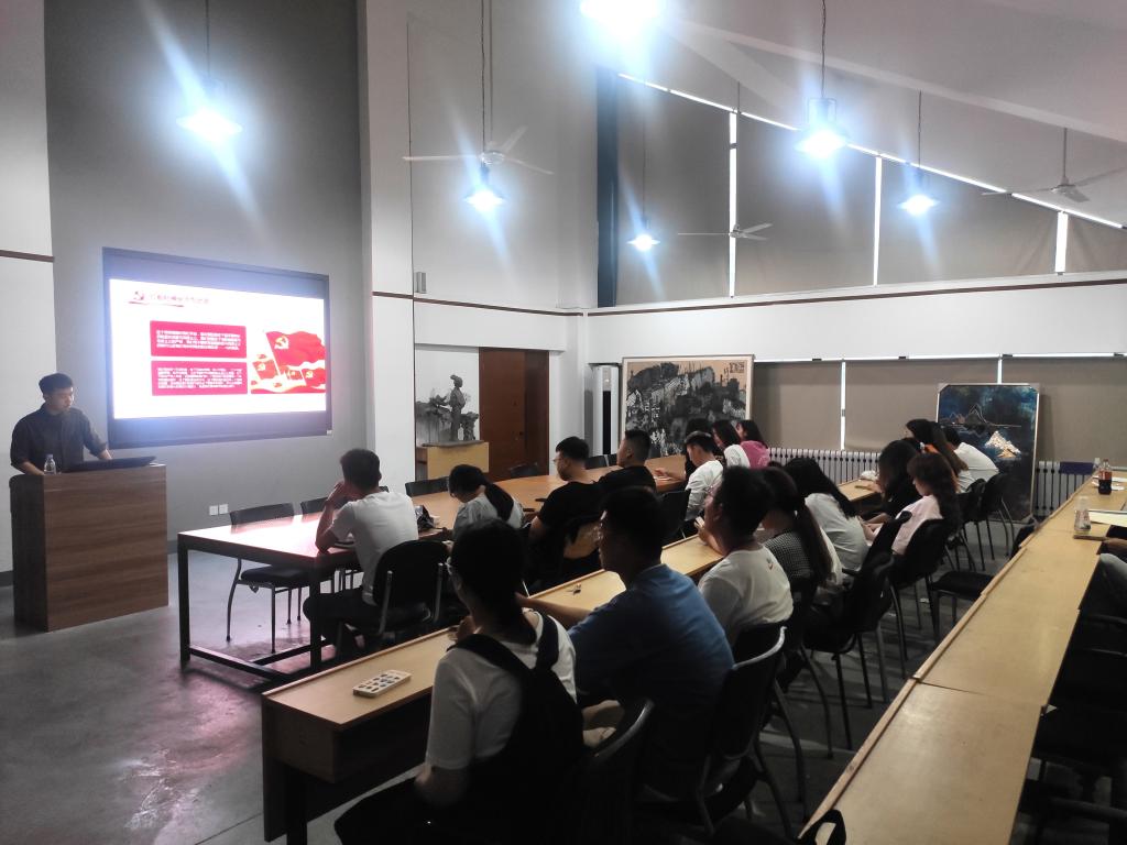 为回忆激情燃烧的革命岁月,重温革命先辈的英雄事迹,知党史、懂党恩,激发爱国爱党的热情。2021年6月11日,造型艺术学院党总支学生宣讲团在四楼多媒体教室举办“不忘初心,勇立潮头——红船再出发”党史宣讲会。第二节宣讲会由温泽旭和陈栋杰担任主讲人,造型艺术学院全体学生党员、入党积极分子参加。