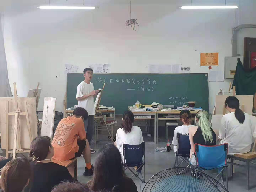 2021年6月16日,造型艺术学院召开校外住宿摸排和宿舍安全管理主题班会,对校外住宿现象进行认真摸排,严肃校外住宿纪律,严格公寓出入,提高学生的安全意识。