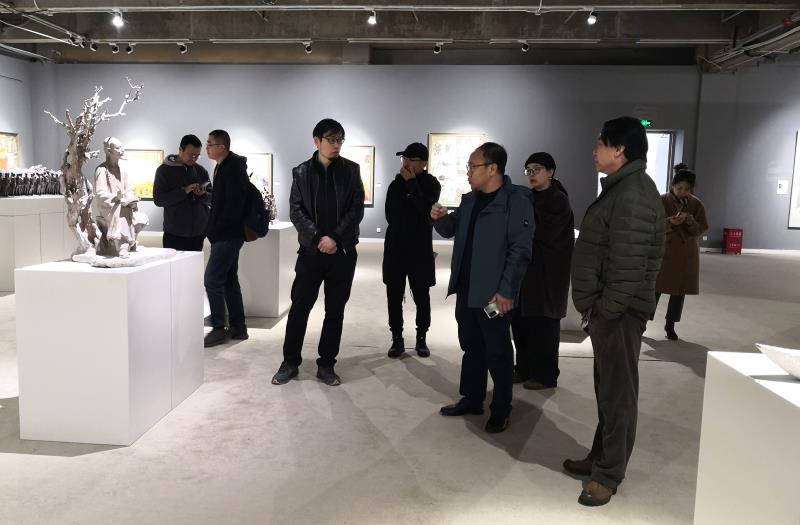 董占军副院长认真观摩了造型艺术学院新进教师的艺术作品,并与新进教师们在艺术创作与作品呈现等问题上进行了深入探讨,对造型艺术学院未来的发展以及教师的创作如何契合社会需求等方面提出了独到见解。董占军首先肯定了本次展览,他认为展览体现了造型艺术学院新进教师队伍的实力,所呈现作品艺术语言丰富,艺术风格成熟,对永利官网的基础教学有很大的帮助。他希望新进的青年教师们能向大师学习,能相互借鉴学习,且能够发扬各自的艺术风格,坚持勤奋的创作之风。在创作选题上董占军指出,新进教师们应该多关注国家重大历史题材创作项目,多挖掘红色题材,为构建和谐社会、实现中华民族的伟大复兴贡献自己的力量。在作品呈现方面他指出,今后可以策划更多维度的展览,如以艺术种类为限的门类展览,或以创作题材为限的专题展览,让我院的精品展览能够持续办下去。他指出,这样优秀的展览不仅要在学校层面举办,更应该面向全社会,而且应该形成常规化、品牌化,以期形成更为广泛的学术影响和社会影响。