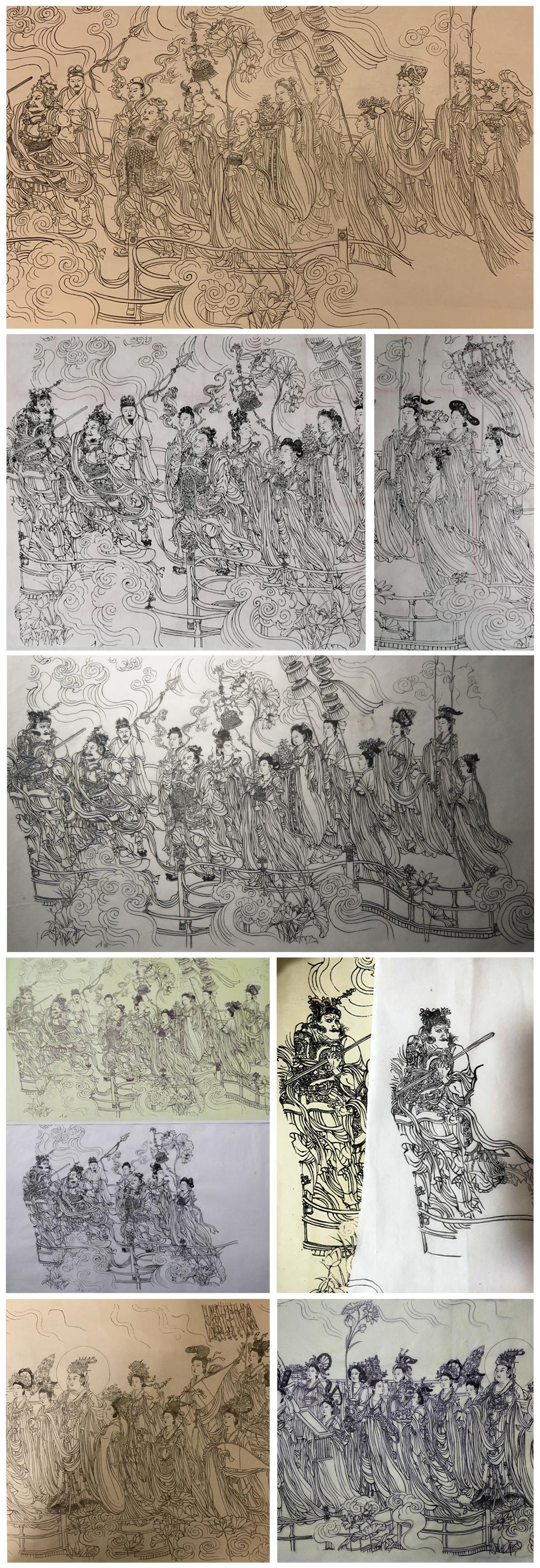 线描课程进入到作业的完成阶段后,教师的主要工作从技法的传授和指导,调整为作业的检查、指导和讲评。现阶段的主要任务是《八十七神仙卷》和《水浒叶子》两个作品的临摹。两个作品风格不同,要求各异,准确的把握作品的风格,需要学生深入的读画,体会作品的技巧、风格、特点,教师则要不断的和学生进行交流和辅导,提点学生准确的把握作品的艺术风格和魅力。