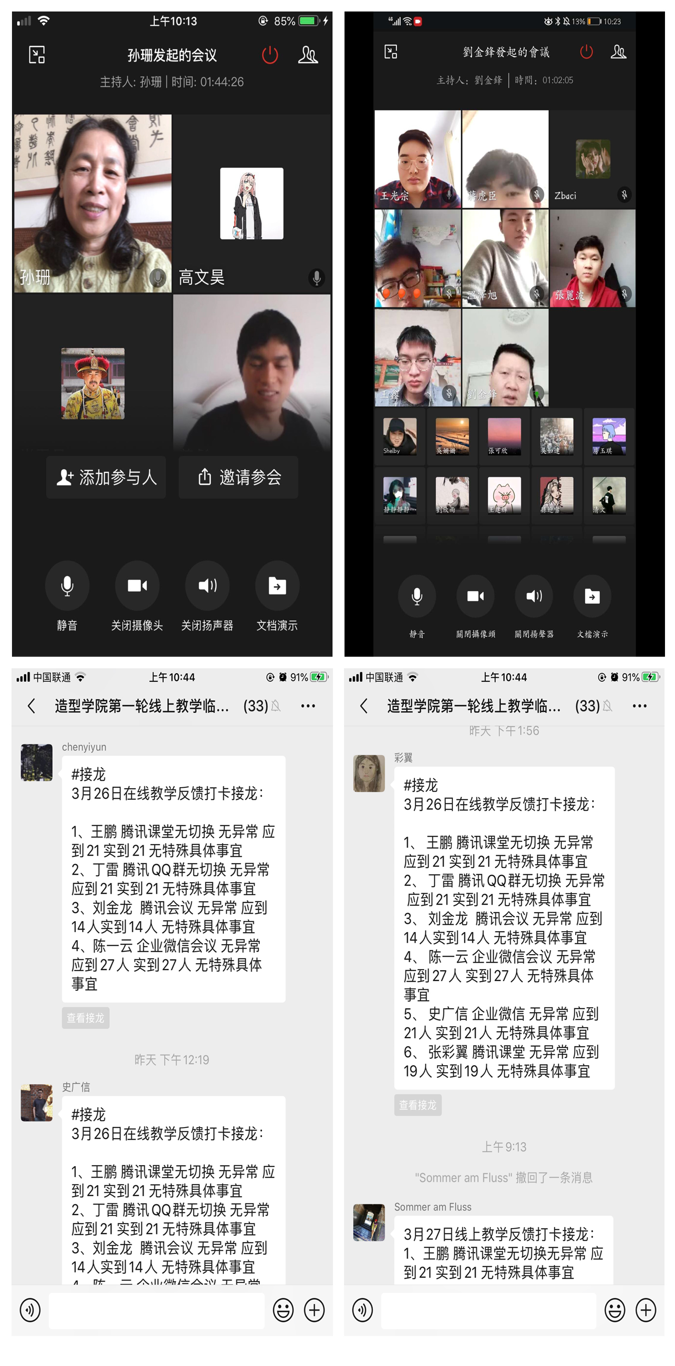 当前造型艺术学院的工作中,线上课堂是教学工作的重点,是打好疫情阻击战的前线。自3月2日始,我院教师陆续来到线上开展教学,以严谨、负责的敬业精神在教学中充分展示了自己的优秀学术才华和丰富的教学经验,给学生以启发和感染,以使同学们不受疫情的影响,取得好的学习效果。
