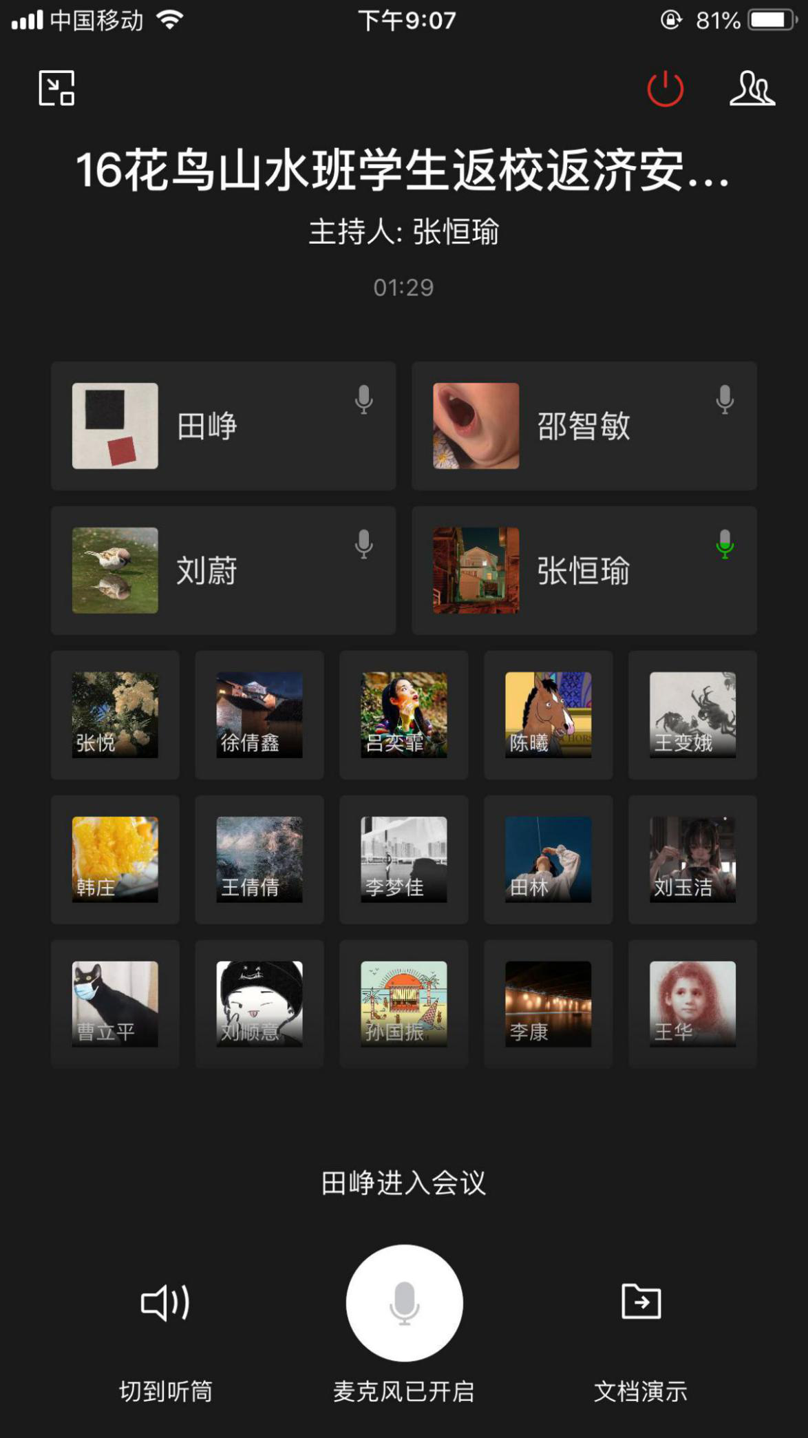 3月20日,造型艺术学院党总支副书记杜鹏、团总支副书记王晓琼和辅导员许威治通过企业微信APP,分年级组织召开线上学生干部例会,重点在疫情防控、学校对学生返校的纪律规定、网课教学及学生心理调适等方面提出要求,各年级全体学生干部参会。