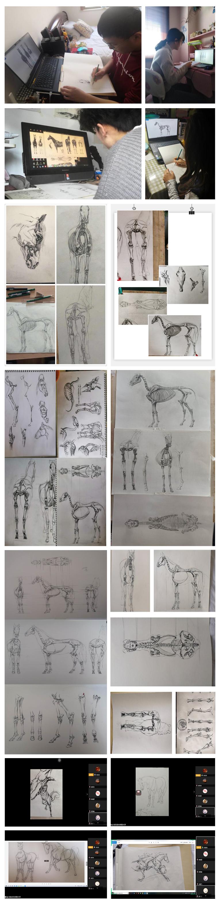 响应停课不停学的号召,我们实行了网上授课,美术专业的课程主要是模特写生,传统课堂教学,老师会与学生一起摆模特,面对面交流、个别辅导,范画引导,甚至是一对一示范,随时直观了解学生的作画过程。同学之间互相评析,取长补短,课堂氛围好,课堂是动和活的,但是疫情影响我们只有进行网路教学,老师为适应线上教学形式的特殊性及时调整教学方案,转变教学思路,注重教学互动,课堂生动有趣,轻松愉快,同学们克服困难、积极配合,参与到课堂,通过三周的学习胆子大了,声音也大了,交流积极了,既锻炼了自主学习的能力,又获得了更多的学习资源,让同学们有时间沉下心来思考和分析以提升自我,希望把这次网络教学好的经验和收获带到传统课堂,相互补充,期待疫情结束时我们课堂见。
