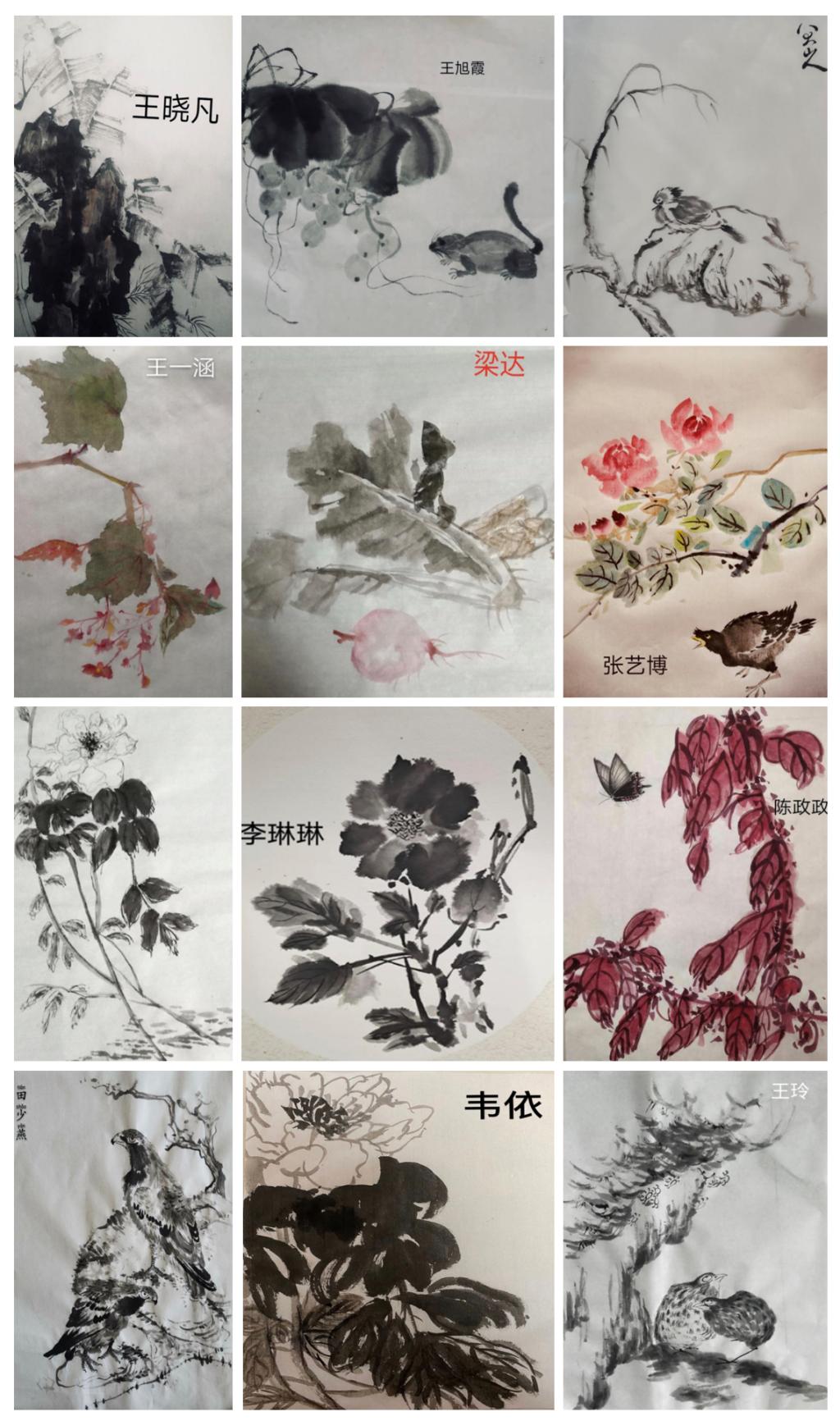 通过2周的引导,一部分学生如王凯、刘维家、王玲、刘锐、胡舒琪、梁达、田少燕等已经基本了解写意画的特点,同时也有了绘画的兴趣,开始有感而发,能够比较用心的进行书法、绘画的临摹,并初步尝试了写生的简单笔墨语言的表达。