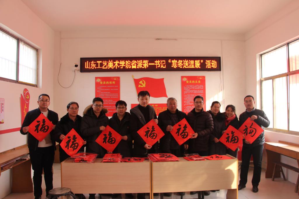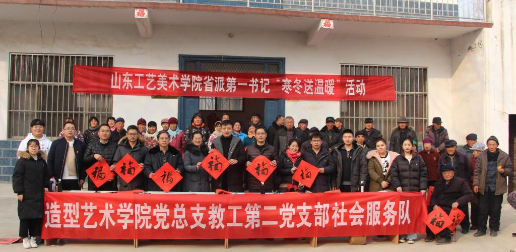 为深入学习贯彻习近平新时代中国特色社会主义思想,抓好基层党建工作,1月3日,造型艺术学院党总支教工第二党支部、学生党支部在党总支副书记杜鹏的带领下,来到学校第一书记帮扶村聊城市阳谷县张秋镇空石街村开展“寒冬送温暖”主题党日活动,造型艺术学院书法专业副教授杨国栋、教学秘书娄彩虹、辅导员许威治以及书法专业党员代表参加活动。