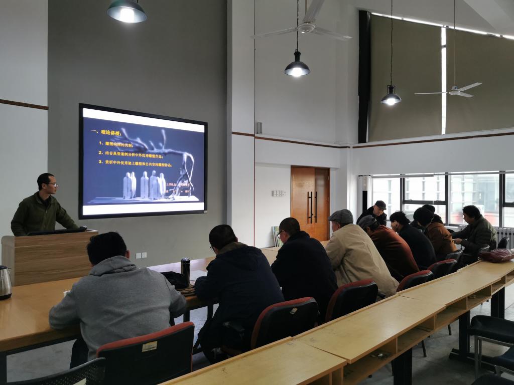 为进一步提高学校教育教学水平和人才培养质量,鼓励和吸引更多教师参与研究本科教学,提高教师的教学素质和教学能力,造型艺术学院根据学校教学计划安排,于2019年11月18在四楼多媒体教室开展了“新六艺杯”创新课堂比赛初评。造型艺术学院院长李勇教授、党总支书记牛序茜教授、副院长高振堂教授、副院长刘宁教授、于新生教授、迟海波教授、孙珊教授及各教研室主任参加评审。参赛教师是由各教研室推选出的优秀教师代表。