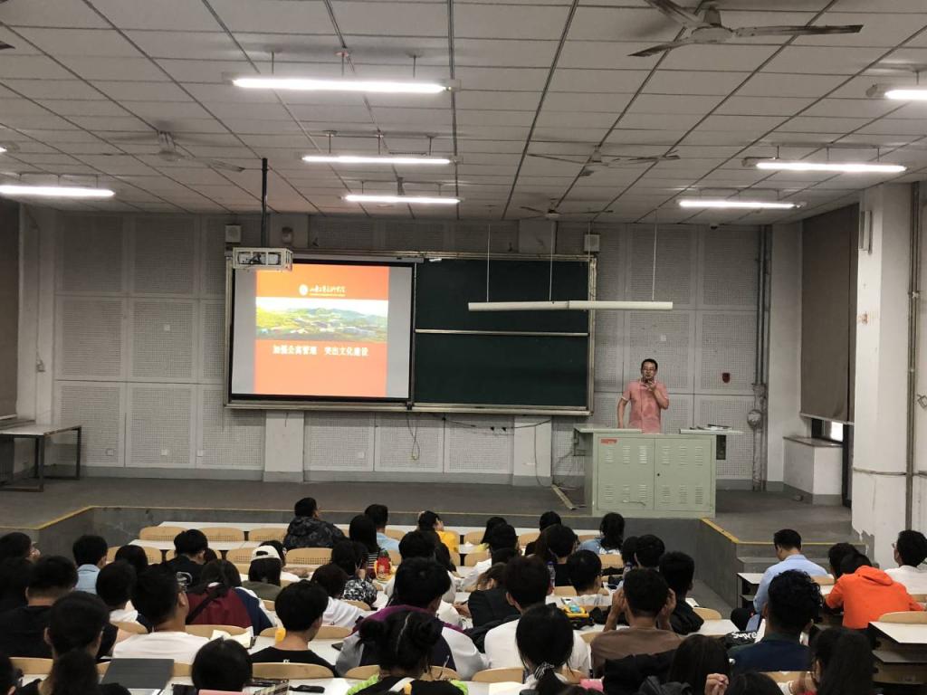 9月12日上午,2019级辅导员许威治于综合办公楼六合堂为2019级新生讲解了校规校纪、公寓管理相关知识。期间,许威治就宿舍公寓管理方面提出要求,表示学生应积极维护好公寓内部的环境卫生,维护公寓的安全环境,学院将狠抓学生公寓管理,为大家营造良好的学习生活环境。他还结合实际案例带领新生了解校园诈骗、偷盗、火灾、食物中毒、传染疾病等需要特别警醒的方面,提醒新生注意加强防范,杜绝此类问题发生。其后,他就校规校纪中的重点条款一一解读,对考试作弊、违反公寓管理规定、打架斗殴、盗窃、在校内组织宗教活动等违法违纪问题及处分进行讲解,告诫新生严格遵守相关规定,争取在大学生活中严于律己、勤奋守纪,为日后踏入社会打下良好的基础。最后,临近中秋佳节,学院党总支副书记杜鹏代表学院向2019级全体新生分发了月饼并致以节日的问候,鼓励新生尽快适应大学生活,争取在军训和接下来的活动中有优异的表现。