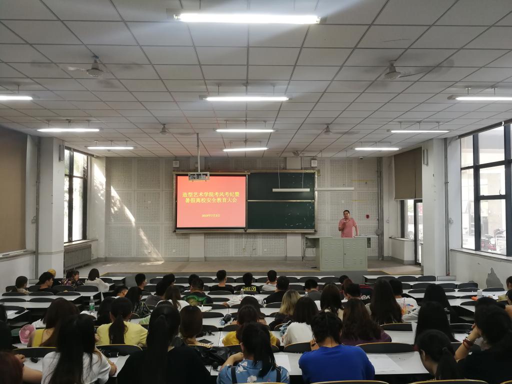 为加强期末考试的考风考纪教育,同时确保学生合理规划并顺利渡过暑假,7月3日下午,造型艺术学院于综合教学楼四合堂为2016级、2017级及2018级学生召开考风考纪暨暑期安全教育大会。大会分别由造型艺术学院党总支副书记杜鹏和辅导员许威治主持,2016级、2017级及2018级全体学生参加。