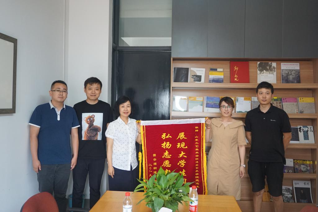 段静芝对学生支教工作高度肯定,对造型艺术学院长期以来的帮扶工作表示衷心感谢。段静芝表示,支教帮扶团队为社区孩子们带去的不仅是艺术知识和审美层次的提升,更为孩子们在心里埋下了志愿者服务精神的种子,并代表社区党支部向造型艺术学院党总支赠送了“弘扬志愿精者精神,展现大学生风采”的锦旗,感谢造型艺术学院党总支的倾力配合和我院支教学生的无私付出。造型艺术学院党总支书记牛序茜接受了锦旗,并表示感谢润和山居社区给党总支的入党积极分子提供了一个良好的锻炼平台,一年多的合作使得两家单位加深了解,居民受益于大学生的志愿服务,大学生也得到了很好的综合素质提升。