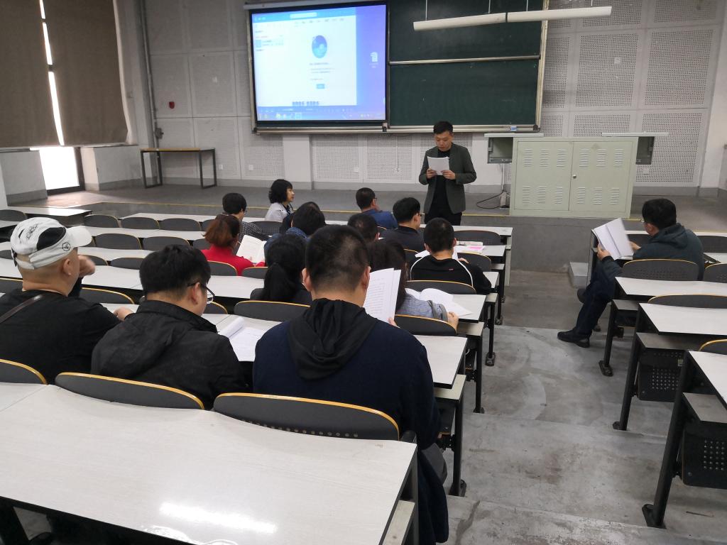 杜鹏带领党员教师原文学习《yl8cc永利官网2019年全面从严治党工作要点》,传达了党委书记何思清在学校2019年全面从严治党工作会议上的讲话精神,希望广大党员、干部认真学习领会何思清同志讲话精神,围绕学校及学院重点工作,结合各自工作实际,认真贯彻落实。