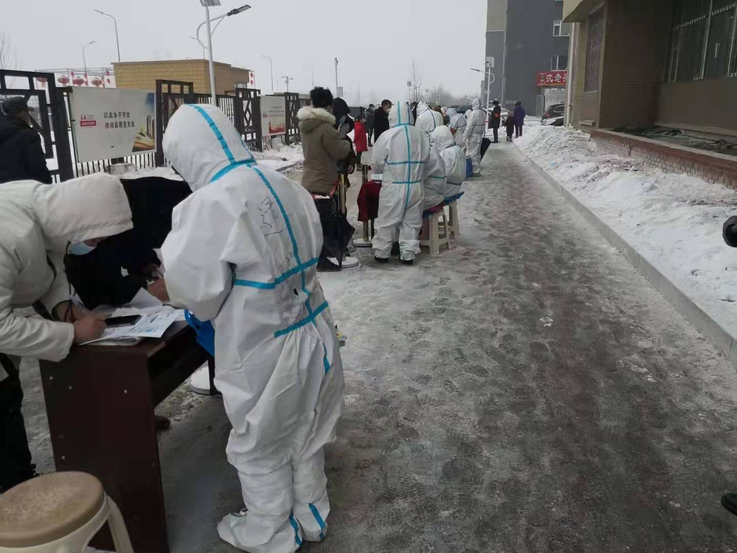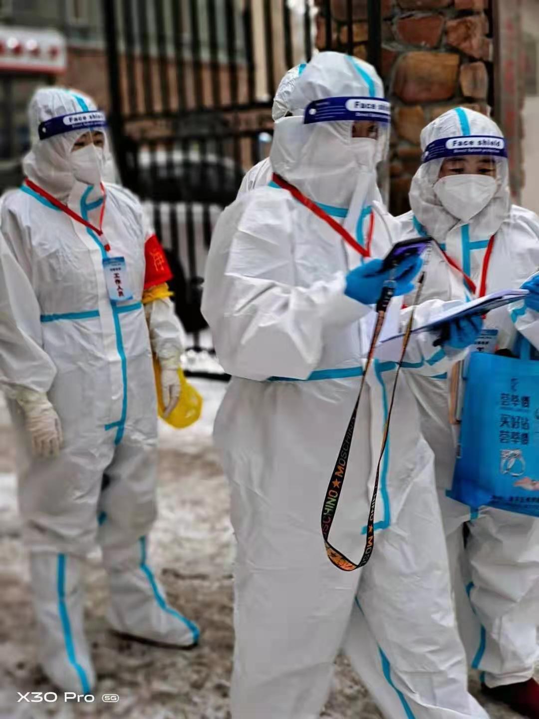 20日上午,黄杰、兰清云两位同志接到支援农大社区通知后,立即投入采样工作。午餐后主动请战到采样困难的农大社区“机动组”,为行动不便的居民开展上门采样工作,分别入户,农场新区、嘉年华小区共15户,核酸采样43人次,其中年龄最大94周岁,80岁以上6人,婴幼儿1人。由于年龄差异带来的困难,多数不能很好配合采样工作,但两位同志以极大的耐心,熟练的技能最终完成采样,圆满配合农大社区完成当日工作。张文辉同志被分配到凤凰社区开展采样工作,采样技能熟练,效率高,得到社区同志的表扬,被要求留用,每天工作时间从上午7点到晚上10点整。张文辉同志说:“作为医护人员,自己所学的医护知识真正能派上用场,感到特别自豪!”宋云同志走访居民楼11栋,入户20余户,单人采样40份,路上风雪交加,室内采样大汗淋漓,采样对象最小的受测者年龄35天,最大的受测者94岁,晚上同样要工作到10点。佘红同志共采样三个小区,27户,为了多采样,口渴也不喝水,采样有不少小孩子,经常哭闹,给采样工作带来了难度,但是她特别耐心,工作得到群众的认可。刘凤霞同志采样的人群情况特别复杂,有术后患者、残疾人员,包括幼儿,很多楼宇没有电梯,需要爬上爬下,刘凤霞说:“再累只要能为防控疫情尽自己一份力量,还是非常开心的。”王士轩和杨阳两位同志穿着棉衣在室内采样,由于不能脱防护服,热得浑身是汗,但是他们始终坚持工作,毫无怨言。参加核酸检测的医护人员以忘我的精神投入核酸检测工作中,得到了区疫情防控指挥部领导和社区现场工作人员的一致赞扬,展现了Beat365中文官方网站医院医护人员敢打硬仗、甘于奉献的良好精神风貌。