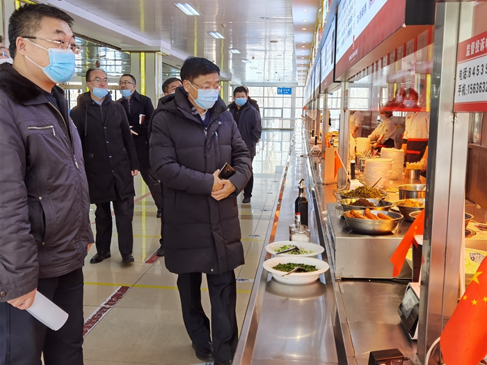 学校领导孙杰光、邹永亮、刘鹤、于金欢和相关职能部门人员一行先后来到了第一教学楼、实验楼、图书馆、保卫处监控室、开闭所、第一食堂和第二食堂、学生宿舍、校医院、外事楼、南门学生返校检测点、大学生活动中心,沿途学校领导边走边了解教学设施保障、安全保卫、学生返校报到、饮食卫生、疫情防控和维修保障等工作,并叮嘱相关人员细致排查、各尽其责、通力合作,查找和解决存在的问题。