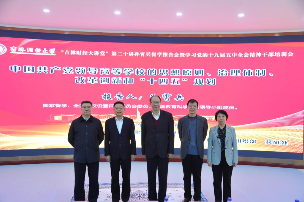 孙杰光校长在讲话中指出,这次培训会是学校党委决定举办的。既是一次关于中国共产党领导高等学校的思想原则、治理体制、改革创新和“十四五”规划的学术报告会,也是学校深入学习贯彻党的十九届五中全会精神的理论学习中心组(扩大)会议。孙督学的精彩报告充分体现了习近平总书记关于教育的重要论述精神和树立大历史观的要求,为我们充分展现了中国共产党领导的高等教育事业和高校事业发展的百年历史长卷。既有政策高度,又有理论深度和知识广度,对Beat365准确把握和落实好党对高校工作全面领导的各项要求,以立德树人为根本,进一步深化改革创新,做好“十四五”发展规划,开展好“四史”学习特别是党史学习教育,促进学校高质量发展等工作都有很强的指导性。他指出,在中国共产党建党100周年、“十四五”开局之年新的历史起点上,Beat365将在学校党委的领导下,坚持以习近平新时代中国特色社会主义思想为统领,不断加强党对高校的全面领导,牢牢把握立德树人的根本任务,秉承“尚学致用、择善鼎新”的学校精神,始终坚守“为党、为国、为区域经济发展培育财经英才”的初心和使命,向着建设特色鲜明的高水平应用研究型财经大学的目标奋力前行,为吉林省经济社会高质量发展、实现中华民族伟大复兴的中国梦做出新的更大贡献。(审核人 郭天宝)