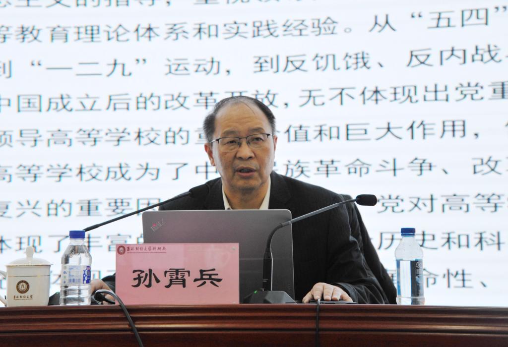 在报告会上,孙霄兵督学分别从坚持党对高等学校的全面领导、坚持党管人才原则、坚持党领导高等学校的中心、坚持提升高等学校办学质量、坚持深化教育改革创新、坚持高等教育对外开放、认真落实党的知识分子政策等七个方面,系统论述了中国共产党成立百年以来,在艰苦卓绝的革命斗争和建设历程中形成丰富的高等教育理论和宝贵的实践经验。同时他指出,编制“十四五”发展规划是高等学校积极谋大局、应变局、开新局的重要依托,要牢牢抓住全面提高人才培养能力、深度融入社会发展进程、加快实现治理体系和治理能力现代化的指导思想,认真做好组织领导、总体谋划、扩大民主、细化任务等工作,从教育是国之大计、党之大计的战略高度,提高规划编制工作的前瞻性、战略性、科学性和实操性。