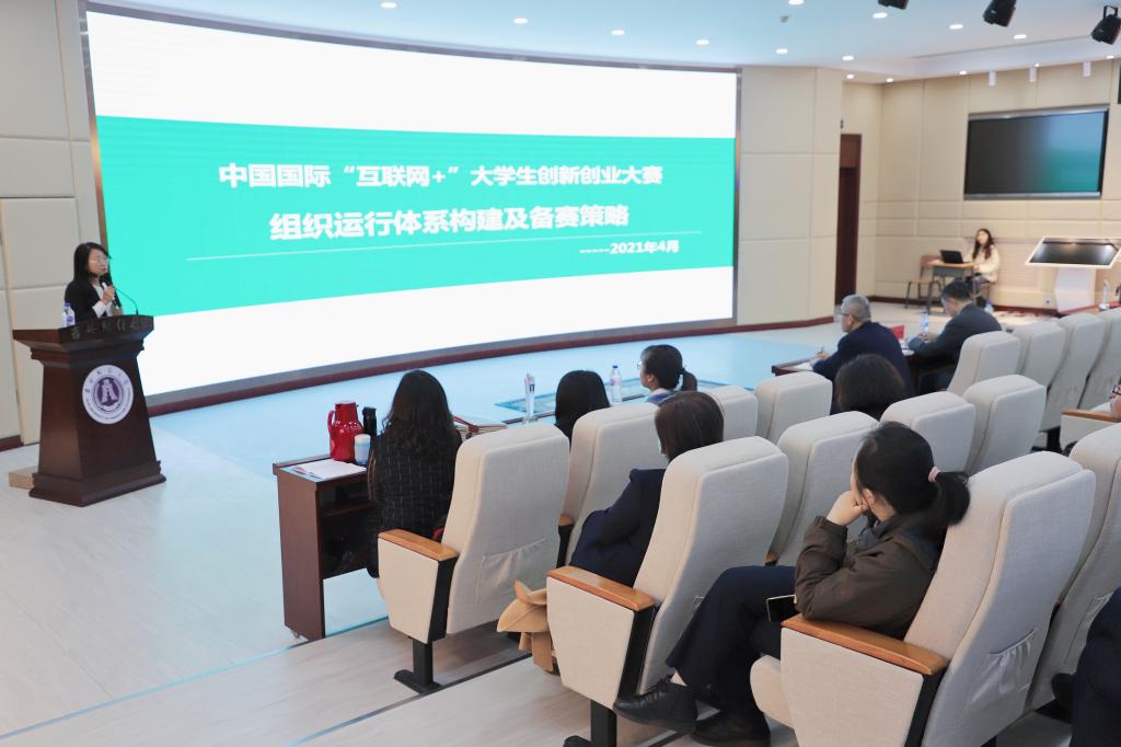 国家高级创业指导教师崔家红教授,为与会师生作了题为《创新创业大赛组织运行体系构建及备赛策略》的报告。崔家红教授从创新创业大赛体系构建及“互联网+”大赛的运行体系、培训流程、备案要点、项目辅导进行了系统、深入、全面的讲解。
