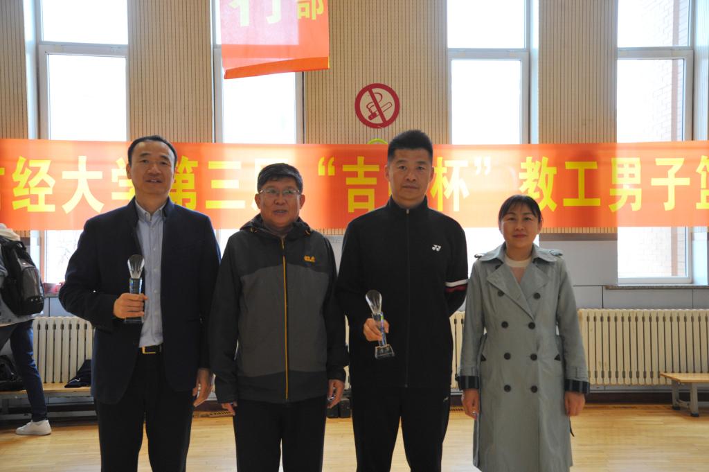 本届比赛历时9天,于4月23日中午圆满落下帷幕。闭幕式开始前,进行了紧张激烈,万众期待的决赛,决赛的两支队伍分别是后勤、保卫医院、法学院、公管学院、国贸学院联队和管信学院、经济学院、国际交流学院、工商学院联队。比赛中,双方队员顽强拼搏,竞争激烈。迅速快捷的抢断、犀利突破的上篮、行云流水的空切,给在场观众带来了一场视觉盛宴。现场加油声和助威声此起彼伏。经过激烈而又精彩的角逐,后勤、保卫医院、法学院、公管学院、国贸学院联队获得了本届比赛的冠军;管信学院、经济学院、国际交流学院、工商学院联队获得亚军;机关行政、会计学院、金融学院、税务学院联队和体育教研部获得季军。校党委副书记邹永亮,校纪委书记、省监委驻Beat365中文官方网站监察专员岳宏,工会主席刘光和,妇委会主任梁烨出席闭幕式并为获奖队伍进行颁奖,并合影留念。