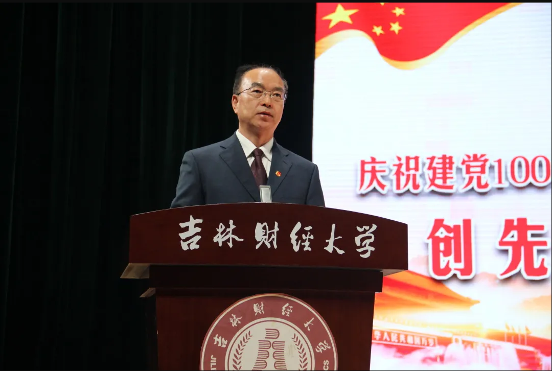 最后,校党委副书记邹永亮在大会上发表了讲话。邹永亮代表学校党委向全校青年致以节日的问候,对学校各级团组织在过去一年里的工作给予肯定,向受到表彰的先进集体及个人表示祝贺。他说,在学校党委的坚强领导下,全校各级团组织讲政治、明方向、凝人心、强本领,真情奉献、攻坚克难,广大青年学生学党史、强信念、听党话、跟党走,锐意进取,砥砺奋斗,以不懈奋斗只争朝夕的昂扬姿态和不畏艰险真情奉献的担当精神,始终走在时代的前列,用自己的实际行动诠释了“党有号召、团有行动”的优良传统,谱写了一曲曲动人的青春赞歌,展现了吉财学子最亮丽的青春底色。他最后向全校青年提出四点希望:一是立鸿鹄志,做奋斗者。广大青年要爱国爱党,从党史学习教育中激发信仰、获得启发、汲取力量,树立为祖国为人民永久奋斗、赤诚奉献的坚定理想。要锤炼品德,自觉用中华优秀传统文化、革命文化、社会主义先进文化培根铸魂、启智润心,加强道德修养,明辨是非曲直,增强自我定力,矢志追求更有高度、更有境界、更有品位的人生;二是兴尚学风,做善学者。广大青年要善于学习,坚持把学习作为一种责任、一种精神追求,学用结合、知行合一,让勤学善思实干成为青春飞扬的动力。要勇于创新,深刻理解把握时代潮流和国家需要,敢为人先、敢于突破,以聪明才智贡献国家,以开拓进取服务社会。要实学实干,脚踏实地,在攀登知识高峰中追求卓越,在肩负时代重任时行胜于言,在真刀真枪的实干中成就一番事业;三是雕瑚琏器,做正气者。广大青年要担负起新时代赋予的重任,在新产业、新业态、新模式上各展所长,努力成为可堪大用、能挑重担的栋梁之才。要立足岗位、创先争优,把高质量发展作为建功战场,在勤学苦练中不断增长人生智慧,在拼搏进取中不断磨练意志品质。要培养批判精神、解放思想、大胆尝试,形成敢于突破、敢为人先、勇立潮头的创新风气,用朝气蓬勃的力量,为高质量发展注入更多青春动能和奋斗气质;四是修高尚德,做追梦者。广大青年要修好个人之德,培育高尚道德情操,传承优良传统,自觉树立和践行社会主义核心价值观。要修好职业之德,以敬畏之心对待党和人民的事业,始终同党和人民站在一起,自觉做中国特色社会主义的坚定信仰者和忠实实践者。要修好社会之德,主动承担社会责任,树立文明新风,弘扬社会正气,传播正能量,唱好青春“好声音”,以青年品格铸就时代品格。